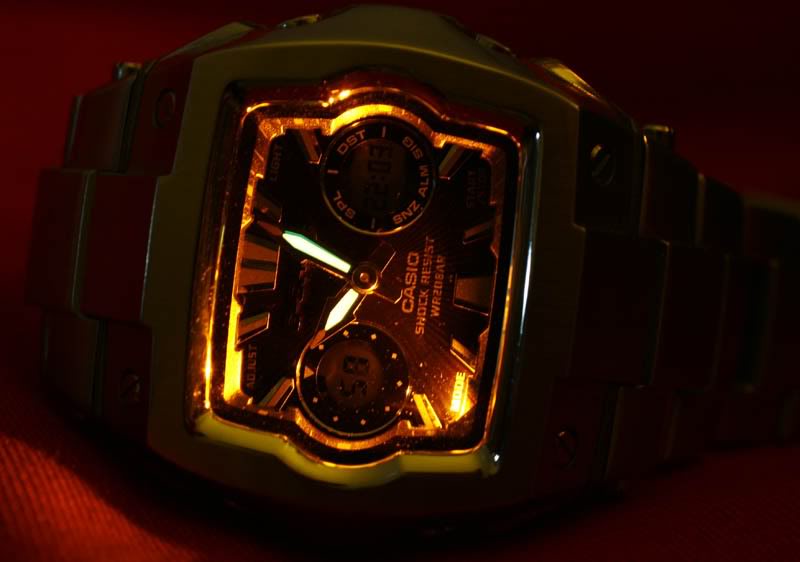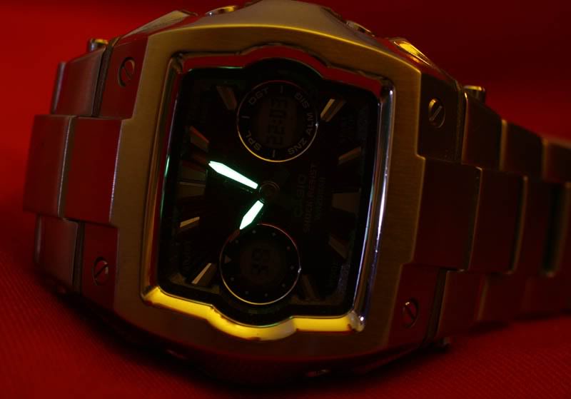 У G-011D стрелки пришлось выставлять вручную через функцию H.Set, подгоняя их под новый часовой пояс. Там то я и намучался с подгонкой секунд, потому что операция ручного сдвига минутной стрелки с шагом +20сек за раз НИКАК НЕ ПРИВЯЗАНА к текущему показанию секунд, и более того, в момент настройки стрелок отображение секунд на соответствующем дисплее ОТСУТСТВУЕТ (дисплей Не светится попросту!), т.е. выставлять минутную стрелку приходится буквально НАУГАД. Раза с третьего только мне удалось приноровится и угадать - то бишь четко попасть в текущие секунды так, чтобы при значении секунд равному "00", минутная стрелка в аккурат подходила к ровному а не промежуточному значению минут (четко становилась по меткам на цифере)!