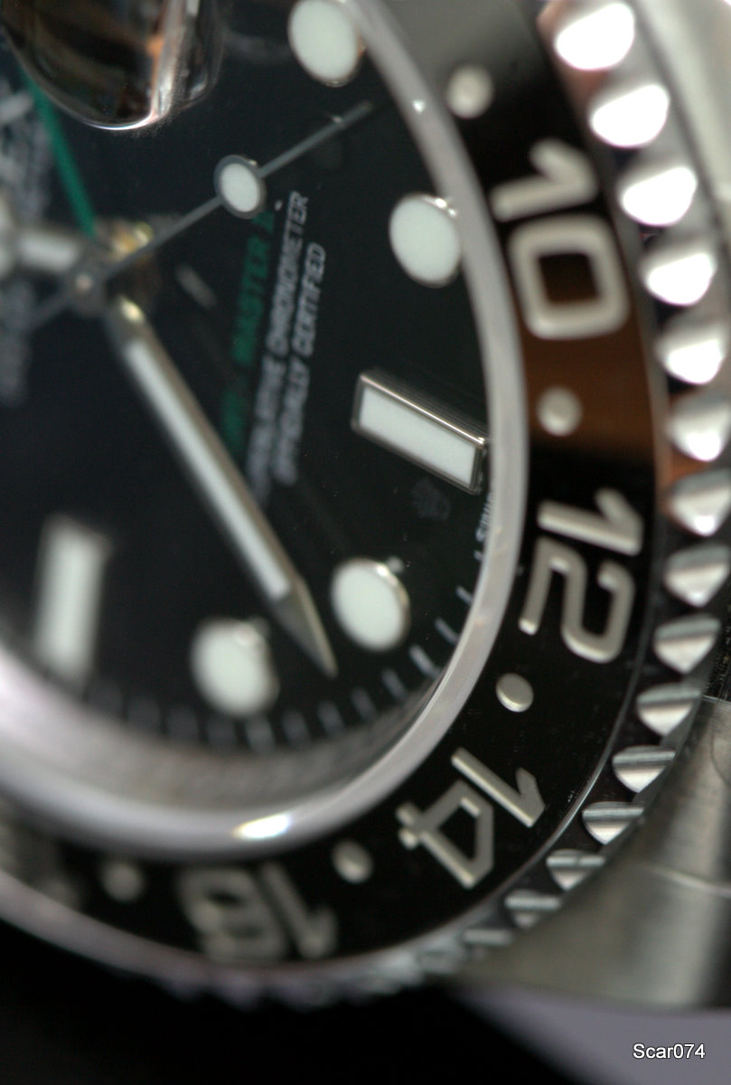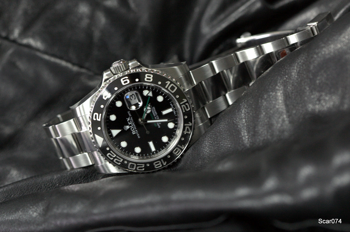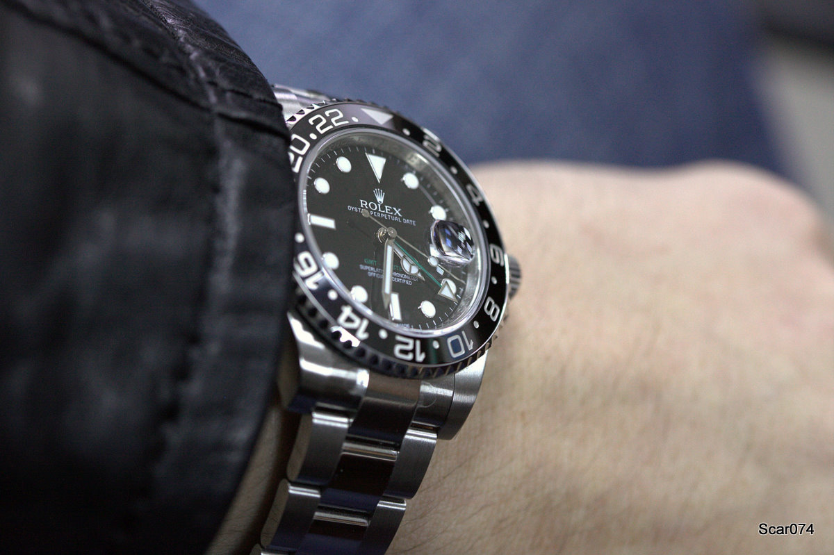 Искал часы на каждый день, но обязательно такие, чтобы престиж и узнаваемость марки, качество, надежность, функциональность сочетались в часах в правильных пропорциях. Не на последнем месте стоял привлекательный внешний вид. Перебрал несколько марок, и благодаря некоторым товарищам на форуме и отсеиванию часовых марок пришел к Rolex. Выбирал из трех моделей Professional серии: GMT2, Expl2, Sub. Нравятся в принципе все, но учитывая свою профессиональную деятельность и тот факт, что две недели в месяц я нахожусь в командировках и мотаюсь по всей стране, решил остановиться на часах со вторым часовым поясом. Так отсеялся Sub, выбор был между белыми Expl2 и GMT2 в стали. Все же внешне мне больше нравятся (все равны, но некоторые равнее!) GMT2, к тому же так срослось, что часы появились у Димы в России, возникла командировка в Москву и накопилась энная сумма блеклых бумажек, в результате я стал обладателем Rolex GMT2 сталь/керамика.