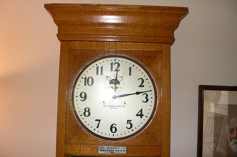 The railroads needed to coordinate among their stations (and among each other lest two trains sharing a stretch of track shared it too closely). In 1883, the U.S. Naval Observatory had agreed to telegraph standard railway time, which turned out to be a great boon for Western Union . An optional attachment allowed the clocks to be synchronized by hourly utilizing the correcting signal from the USNO which forced the minute and second hand straight up if the clock was was within a minute of the hour.