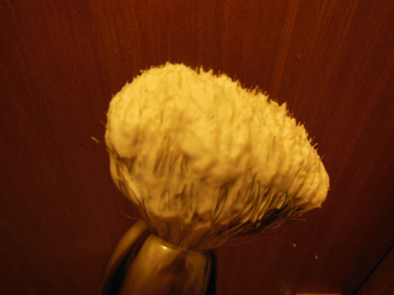 Всё как и вчера,7 раз крутанул помазком (вчера стряхнул половину воды,сегодня чуть больше) , хорошо взбилось,хорошо скользило лезвие .Кожу не щипало,не стянуло и не сушило.