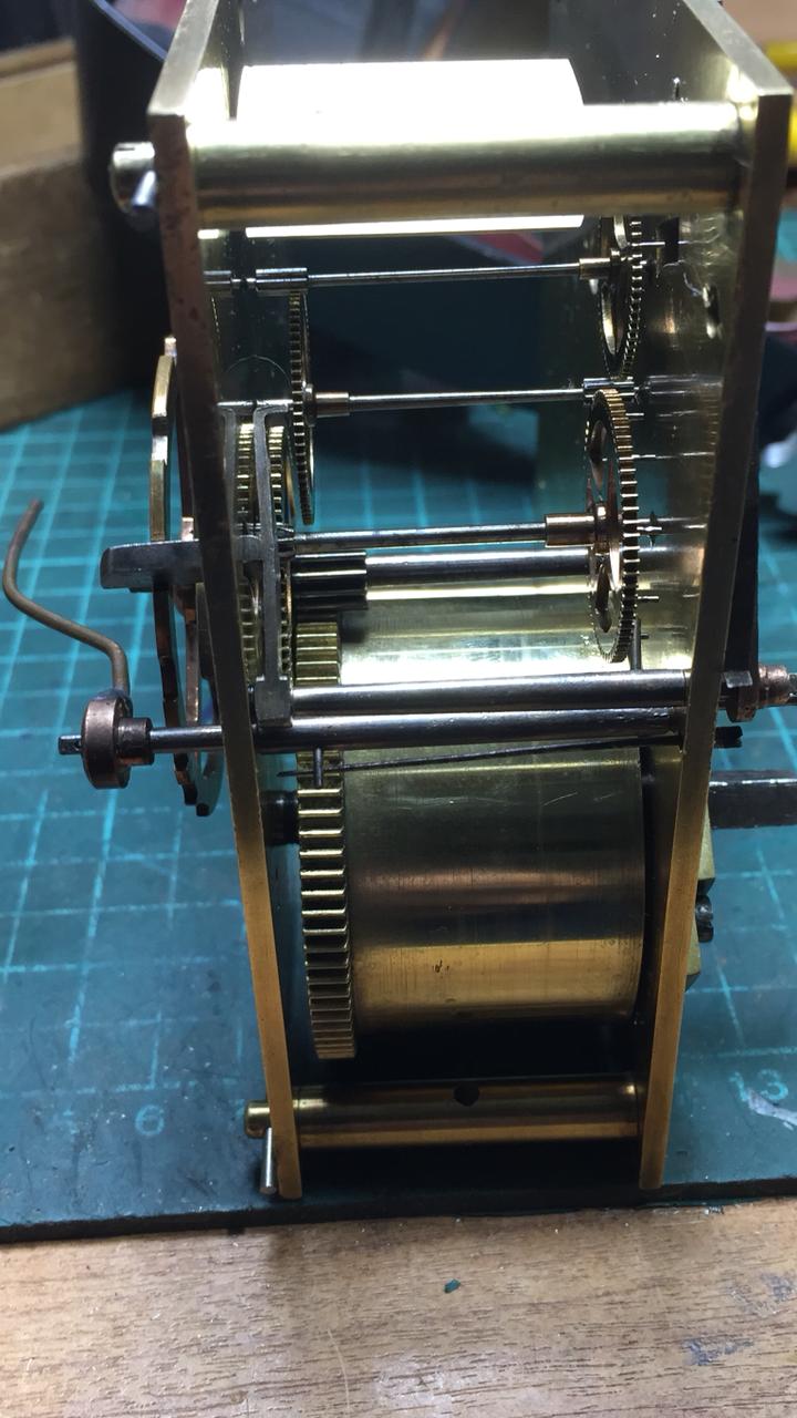 Понятно, куча мала, я столкнулся с подобными сложностями в текущем проекте, по корпусу отсутствие 50% инкрустации, разбираюсь потихоньку. Касательно механизма, бой отсутствовал полностью, долго искал донора, повезло, при перестановке пришлось укоротить оси, проточить барабан, заменить полотно промежуточного колеса, перисверлить пару отверстий в платинах, переделать и подогнать рычаги, в общем пришлось попыхтеть