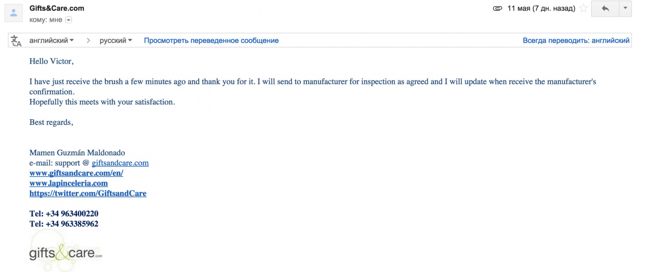 Я спокойно обрисовал продавцу ситуацию, без всякой истерии, вроде предложений засунуть себе в зад облезающий помазок,прикрепил фотографии , дождался ответа от испанцев,