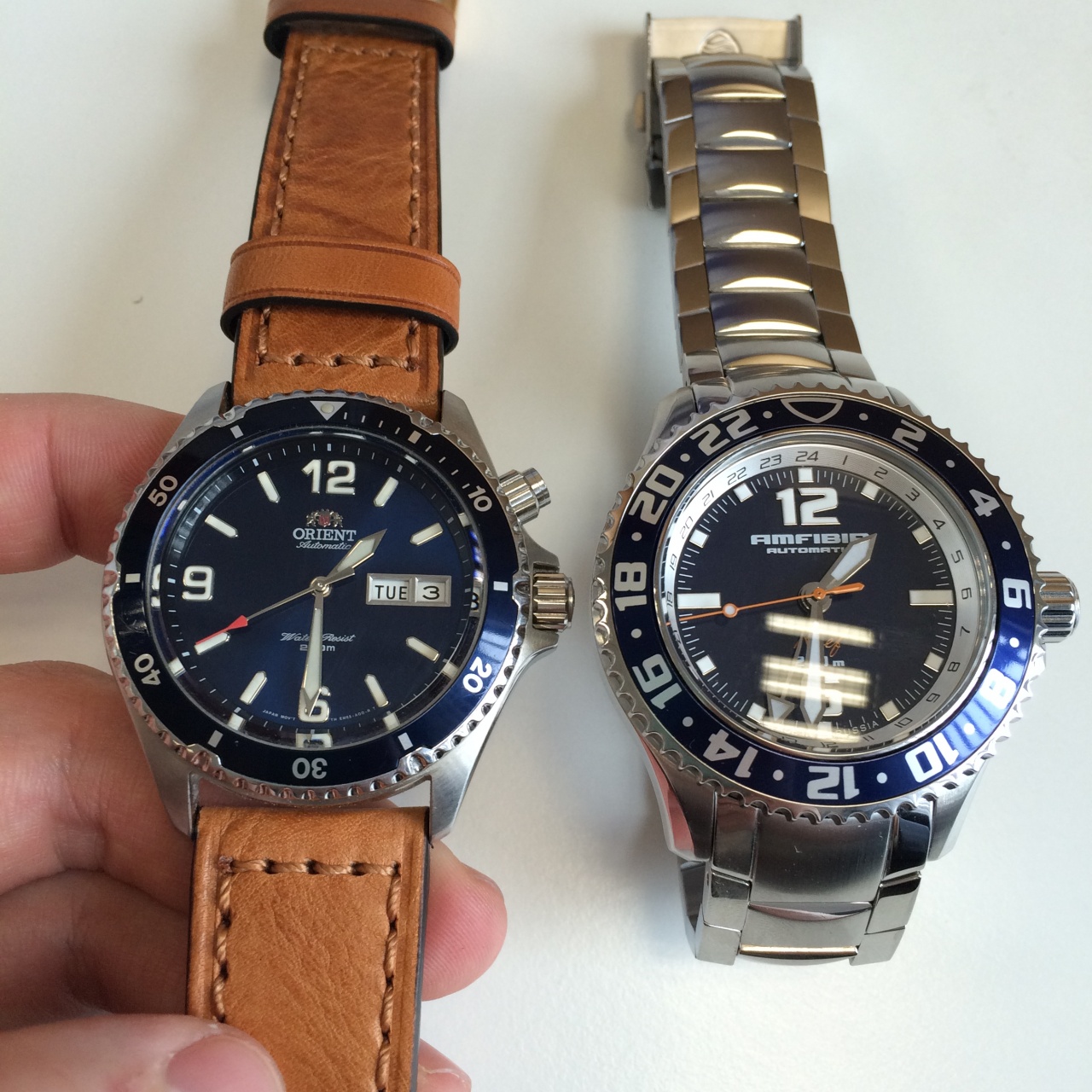 И третье - необходимое для понимания контекста сравнения - я очень люблю свои мако, считаю, что это почти "стандарт" для "начального дайвера" на который надо было ориентироваться востокам, ставил мако выше любых востоков. И очень люблю рифы, особенно первое поколение, рыжие "солнышко на запястье".