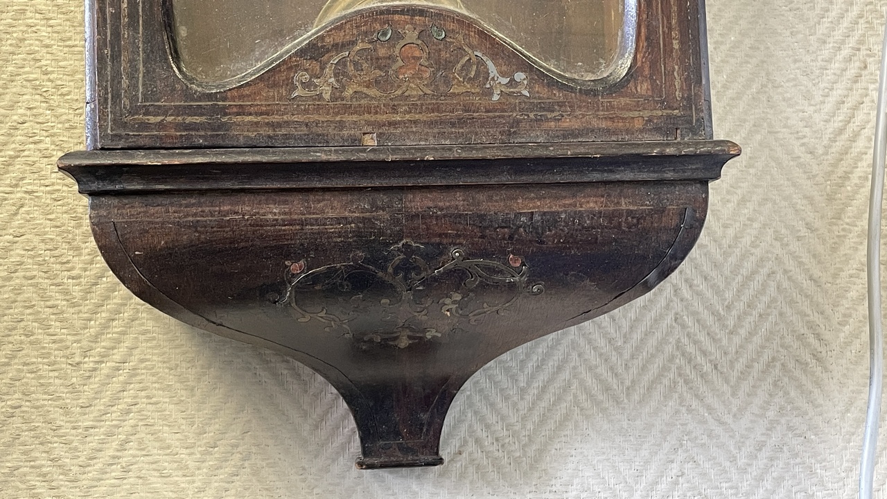 Корпус любопытный, очень ранний для такого типа навершия. В основной своей более зрелой массе такие навершия появились в конце 1870-х и продержались до середины 1880-х, и, поначалу, я подумал, что эта "пила" самодельная. Возможно, что это и так, но нашлись и ранние корпуса ходиков, повторяющие "пилу", хоть и в более аккуратном варианте. Вообщем, если и самоделка, то сделана по разрушившемуся оригиналу.