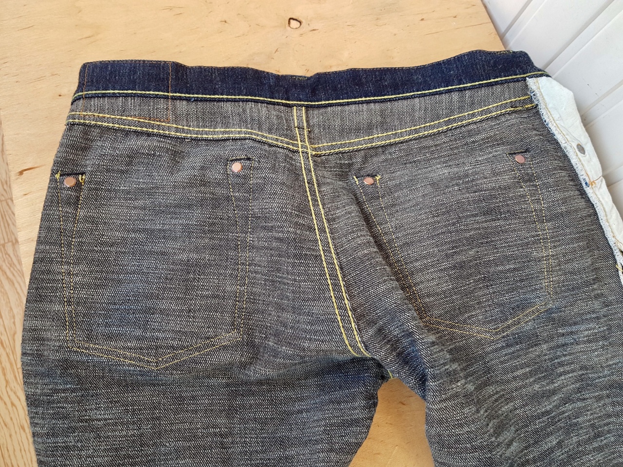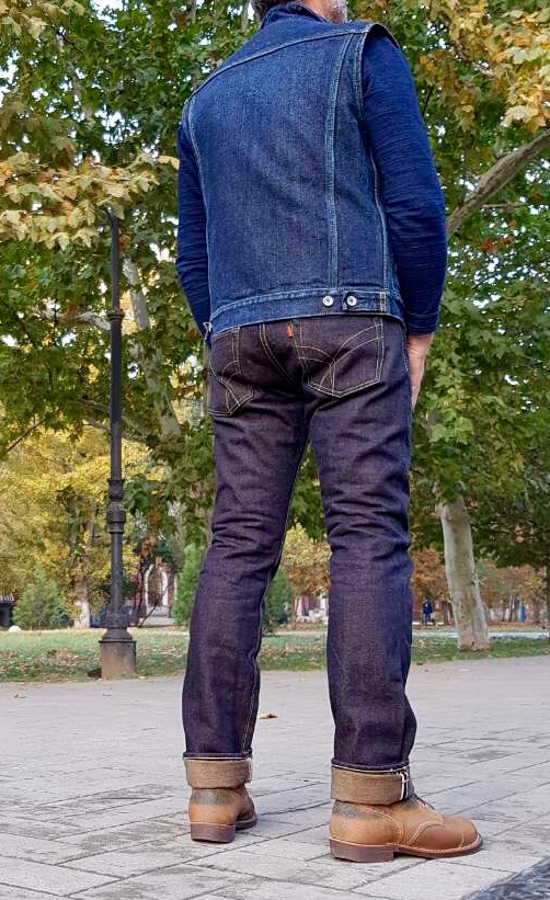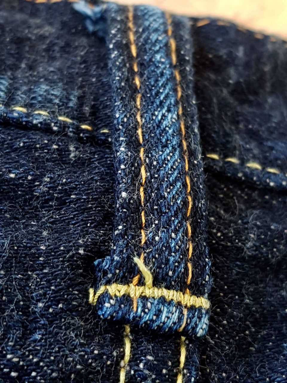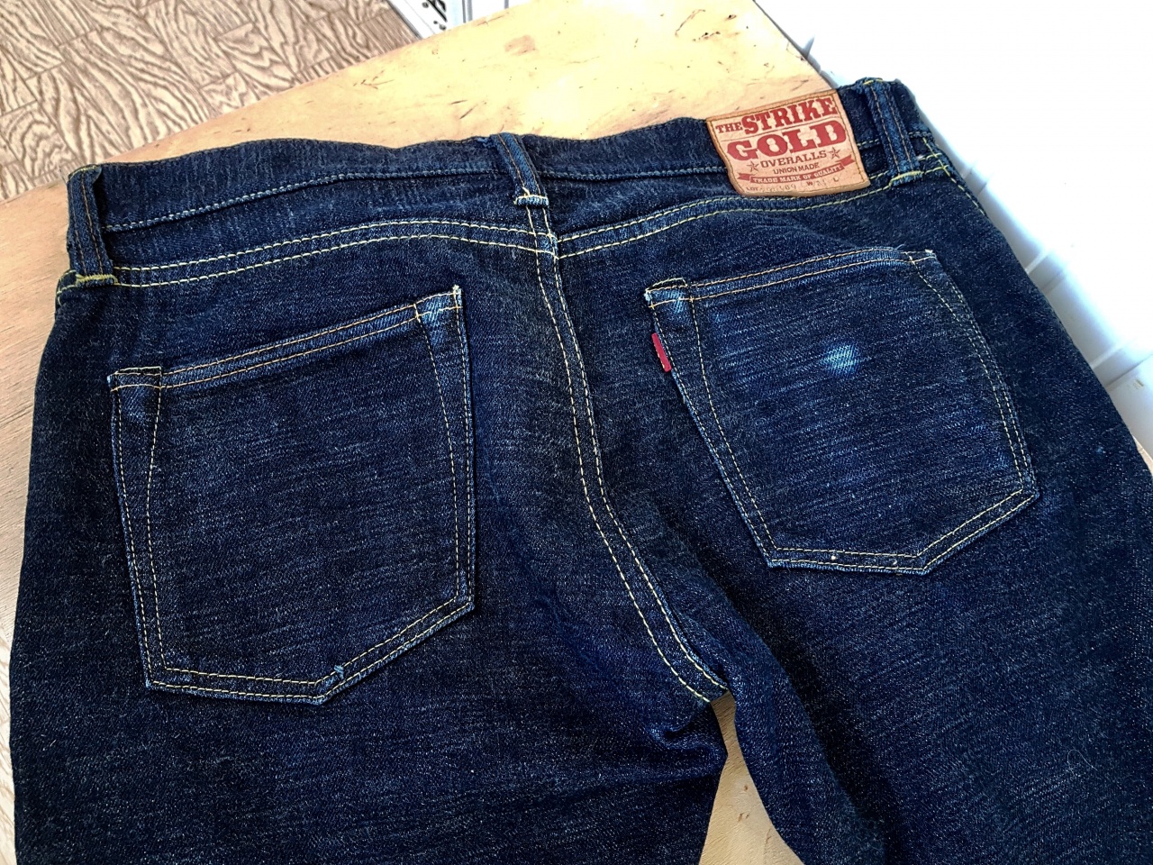 Штан в прекрасном , разношенном до тактильного , состоянии . Вообще , нравится мне Страйковская сборка , смотрится породисто ....ярко выраженные толстые лимонно-рыжие строчки , таб, неубиваемый толстый мягчайший патч , не подверженный влиянию воды ....выпуклые шлёвки , интересная фурнитура ....классно