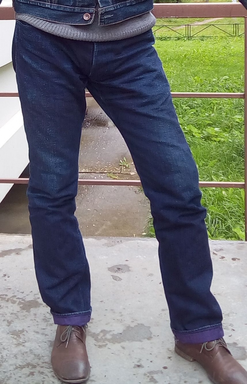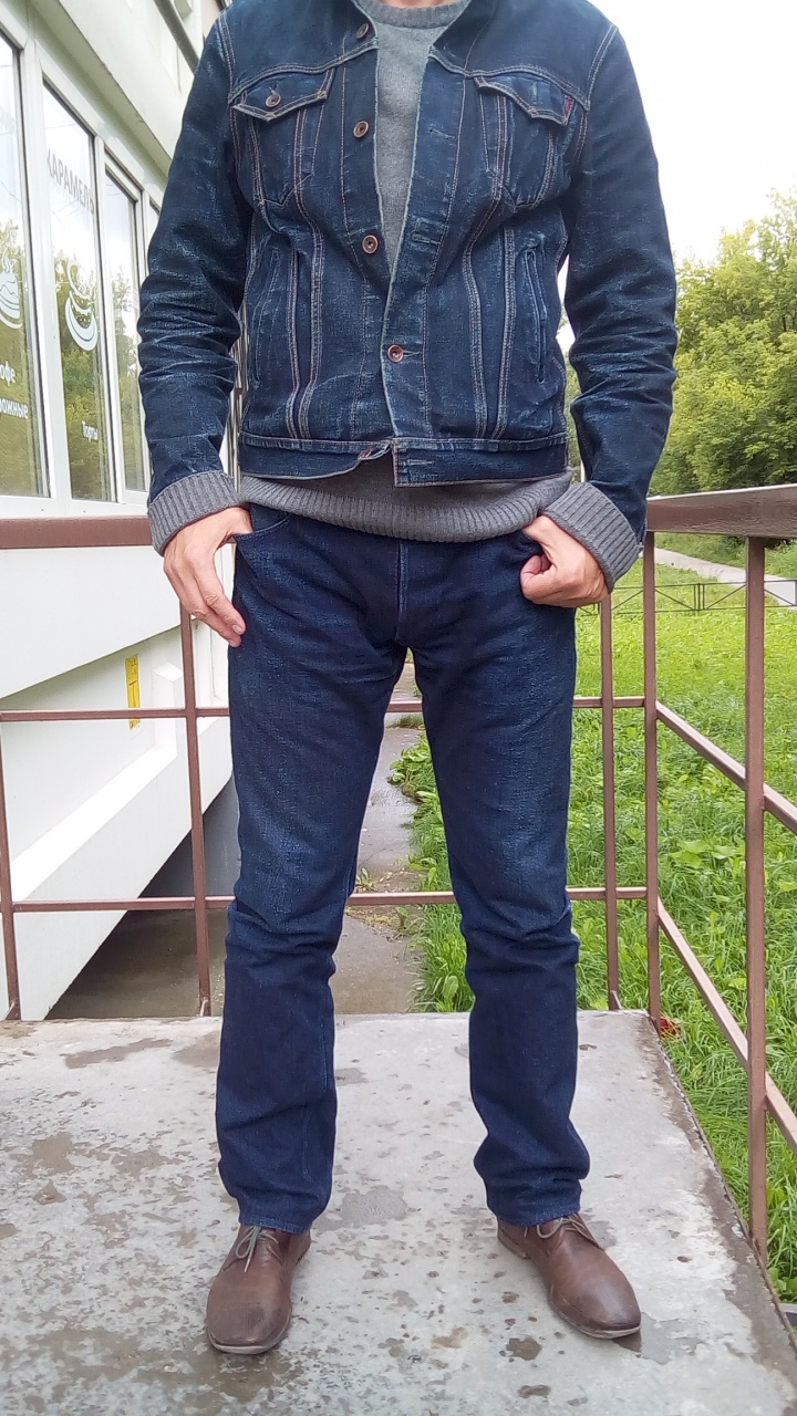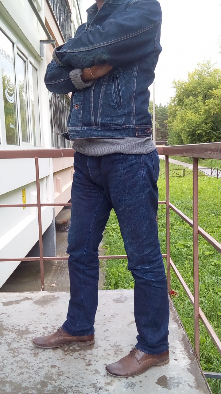 риск на такой заход в "сайз-ап" я посчитал оправданным - пара замачиваний заметно сократила изначальную мешковатость топ-блока, джинсы - невзирая на их предварительную "он вашесть" сохранили способность к дальнейшей усадке и поэтому имеется спокойная уверенность, что когда дойдёт до их стирки в машине, то верхняя часть - остаточный пузырь спереди - усядется ещё больше и фит приблизится к чему-то для меня идеальному