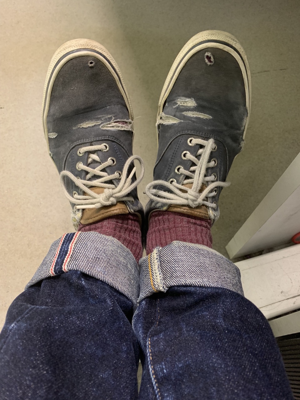 были еще Edwin 47 с радужной кромкой. Но не сохранились. Несмотря на внешнее сходство с тем же каихара деним у Нуди, примерно через год джинсы начинали рваться подобно бумаге в местах натяжения, чем несколько огорчили. Но они и стоили менее 70-80 баксов на скидках