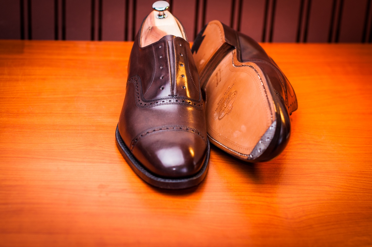 После таких неудачных походов, решил поехать в бутик Church's и пополнить уже немалую коллекцию этого производителя. Оговорусь сразу, до поездки был уверен, что ношу 9UK G fit, по крайней мере 73 колодка и лоферы у меня именно в таком размере. После долгих примерок 173 колодки оказалось, что лучше всего сели оксфорды на коже в 9,5F (Grafton на коже больше 9-ки не брал бы).