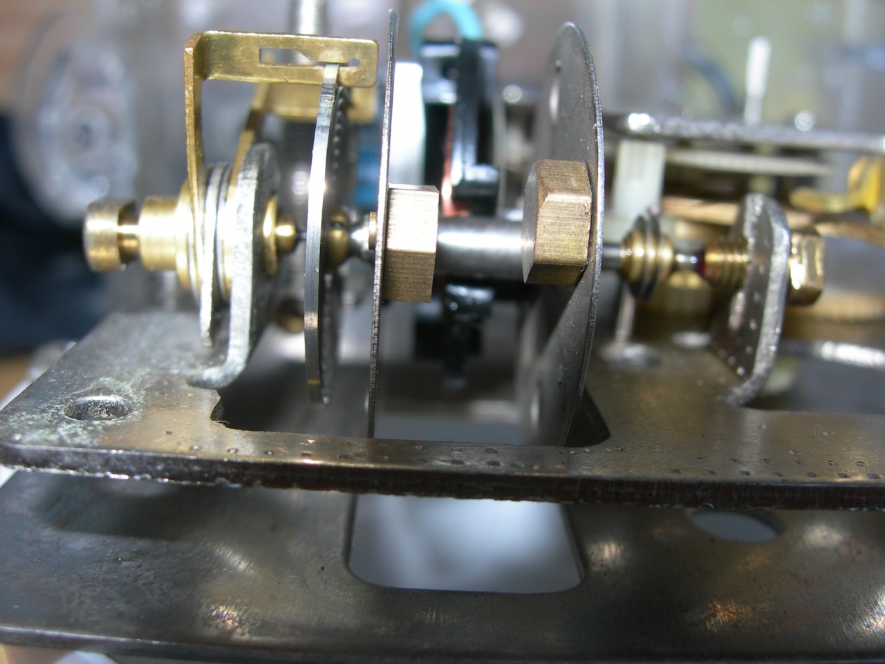 На те, которые бьют позже, минутную стрелку я поставил неродную. Хочется ради спортивного интереса заставить часы бить вовремя. В голову приходит только один способ - провернуть четырехгранник в минутной стрелке, но боюсь ее погнуть. Может быть как то можно еще настроить бой? Желательно без подтачивания рычагов часового и получасового боя на оси центрального колеса.