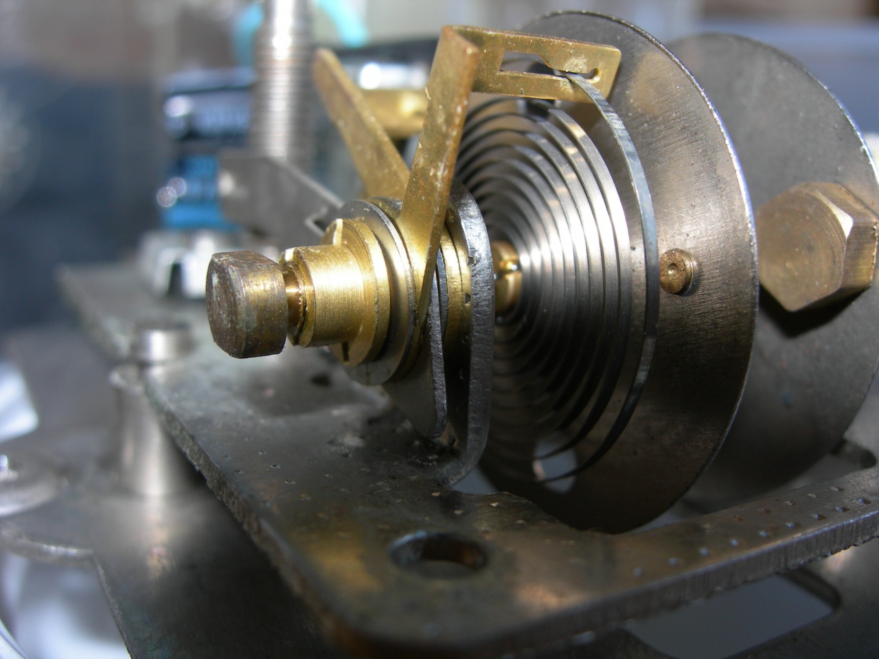 Остроту кончика оси баланса я не проверял, побоялся тогда снимать и расшплинтовывать спираль, смазал ось баланса приборным маслом и наверное щедро. Могла и старая грязь остаться в конусе регулировочного винта, т.к. мыл механизм шприцем со спиртом. Часы уже уехали обратно к родственнице, исправить эти недостатки уже не могу.
