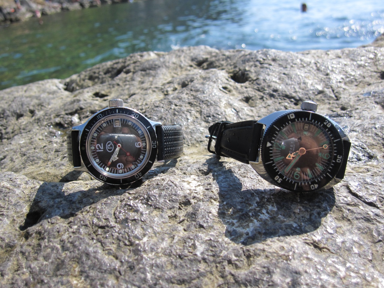 Первое же купание и сразу погружение на верёвочке на 10 метров (а именно на 10атм. эти часы и расчитаны). С замиранием сердца через пару минут поднимаю амфибию...и что? а ничего, воды не набрали и не запотели. Осмелел и стал ежедневно по несколку раз сам погружатся с часами на 10 метров. Затем нырял в них с пирса. И так две недели. Часы не подвели ни разу.