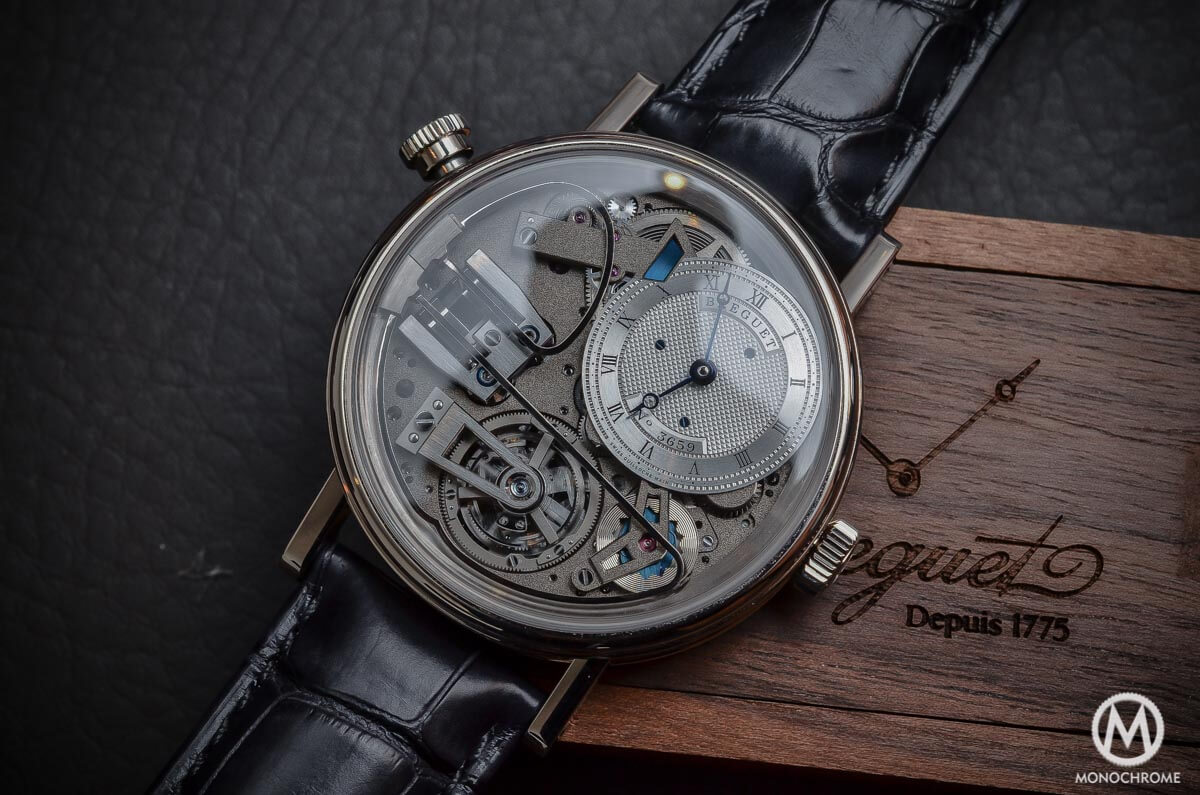 Кроме того, в этих часах применяются молоточки «требуше», которые оптимально передают энергию на гонги. Master Grande Tradition Grande Complication отличается исключительно четким звучанием. Его хочется слушать с закрытыми глазами, чтобы уловить все оттенки мелодии. Прозрачная задняя крышка позволяет насладиться видом слаженной работы молоточков «требуше».
