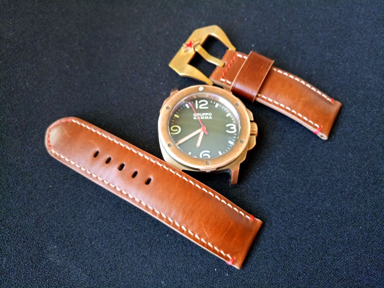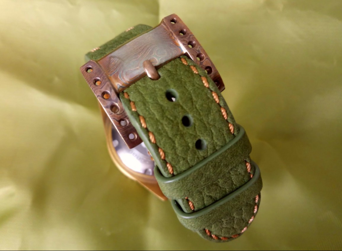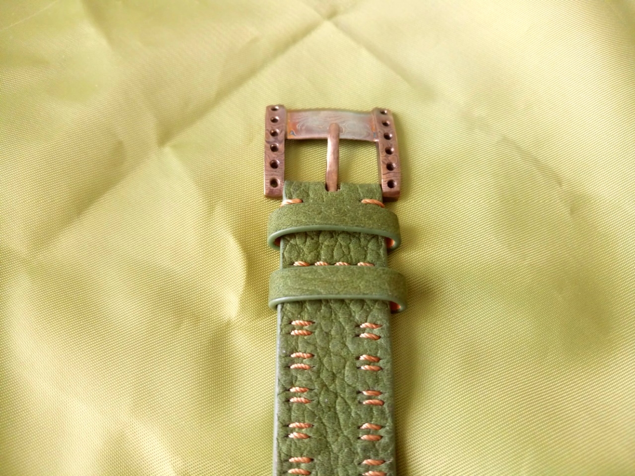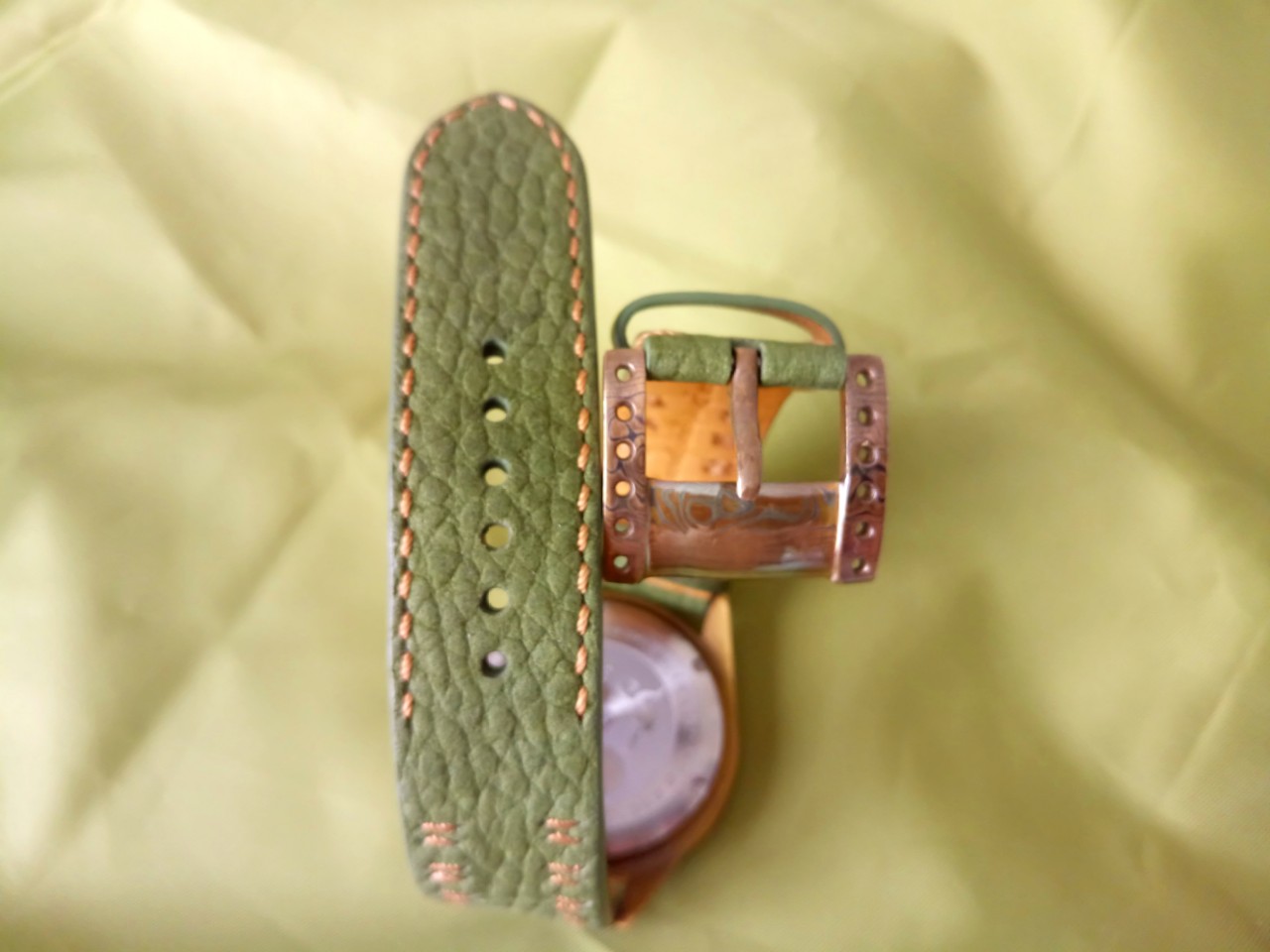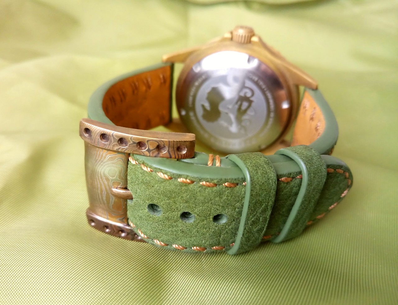 | Часы Gruppo Gamma на зеленом теленке, пряжки из меди/латуни в стиле "стим-панк". |