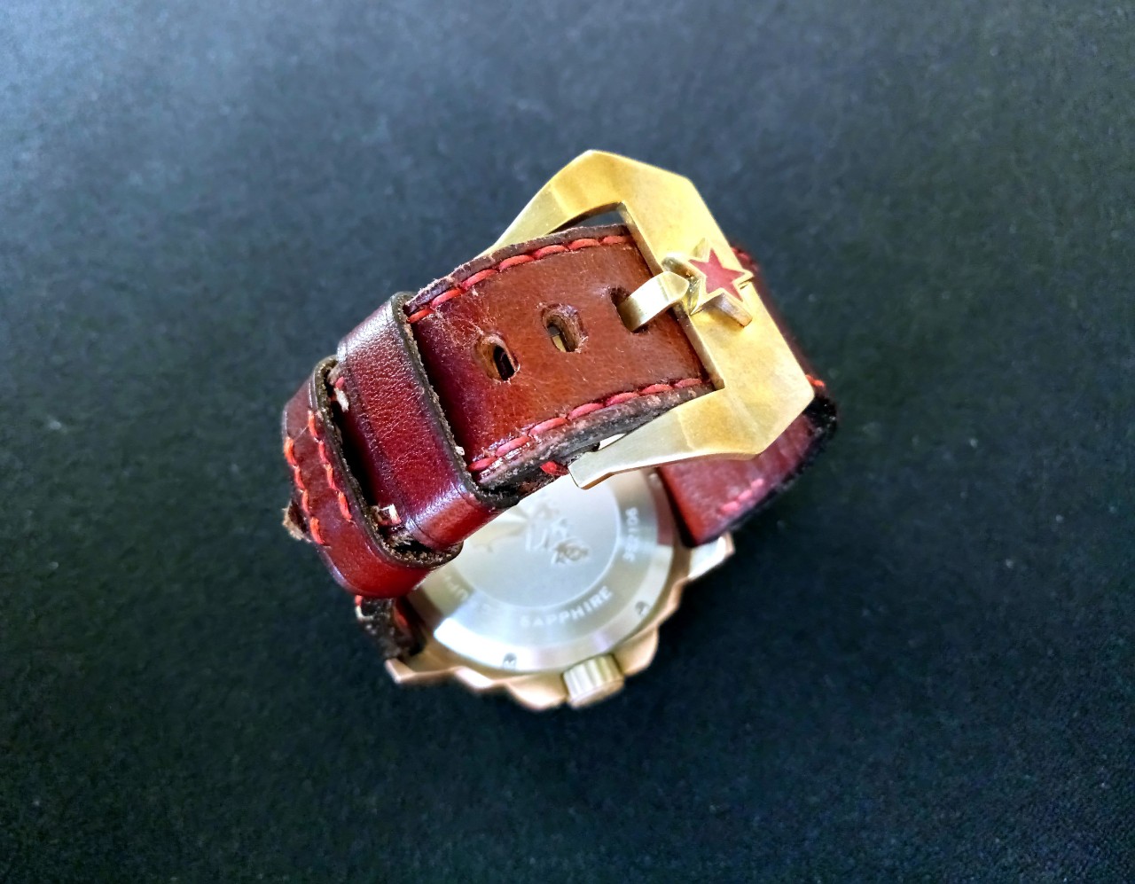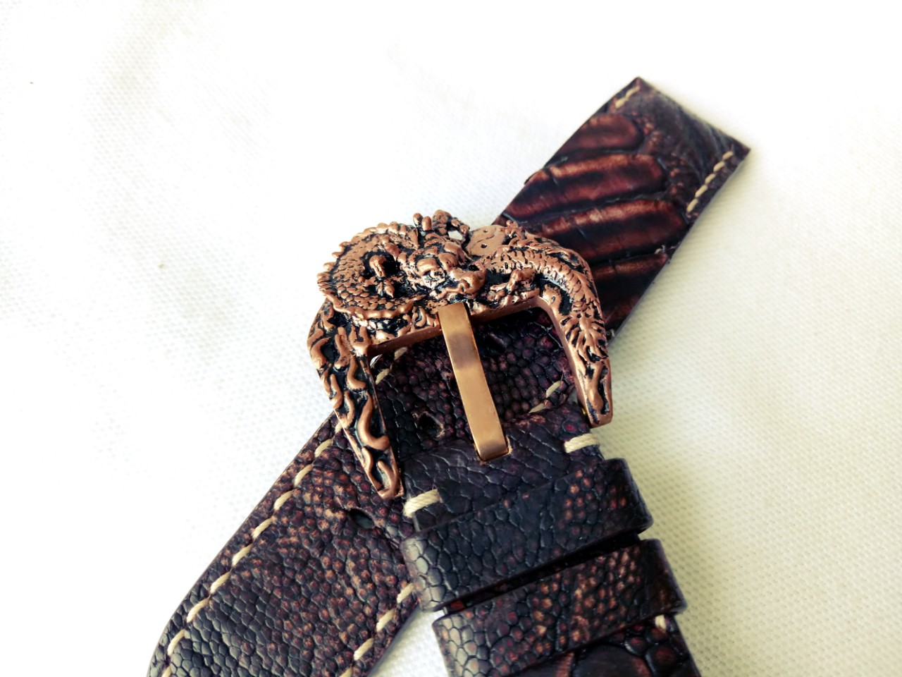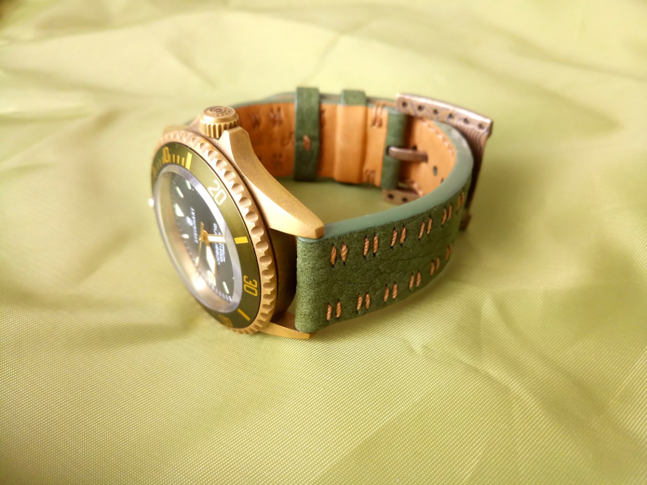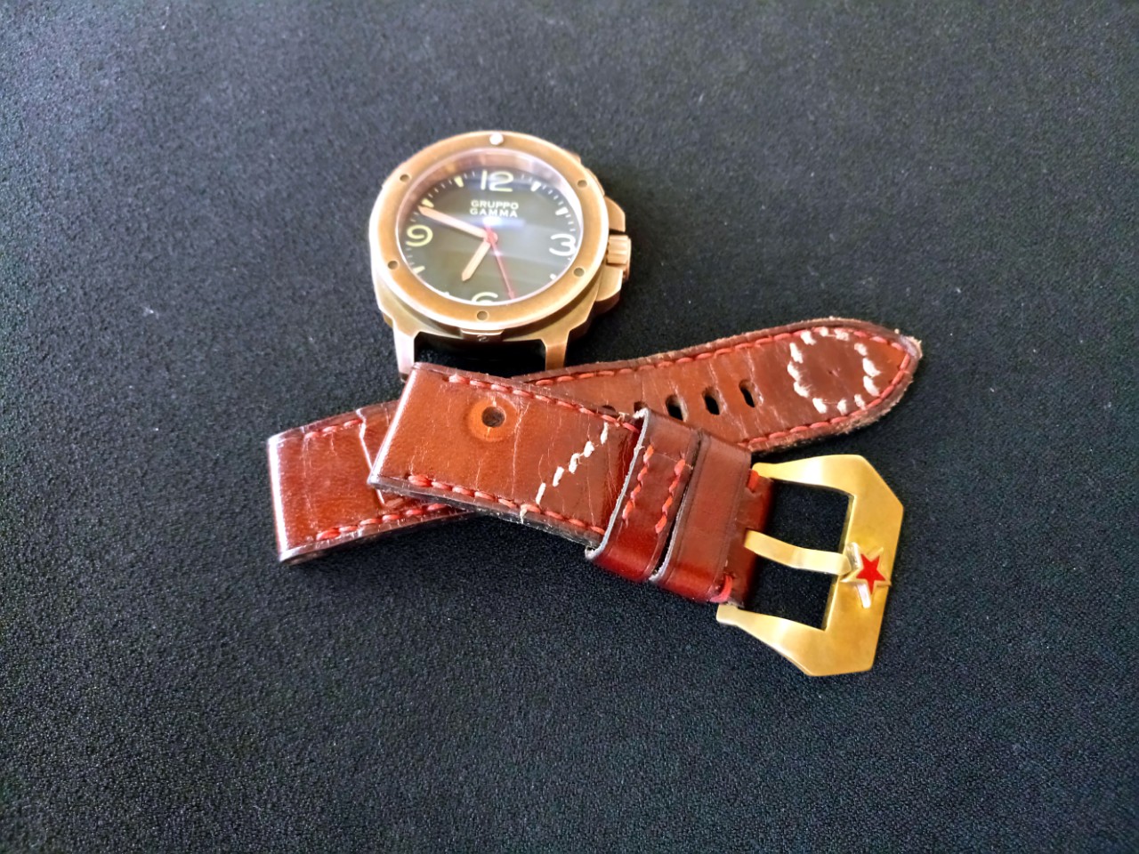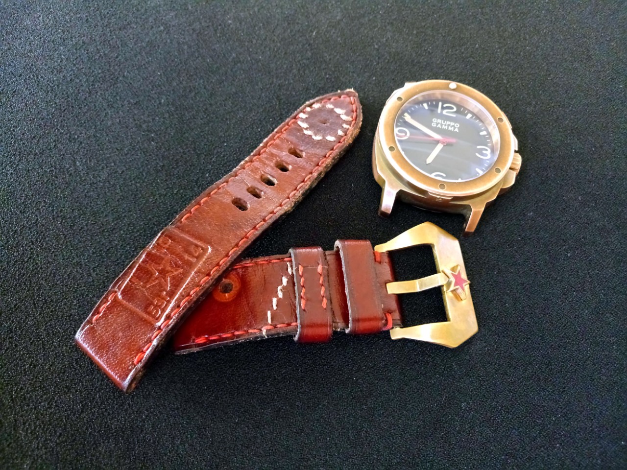| Часы Gruppo Gamma на зеленом теленке, пряжки из меди/латуни в стиле "стим-панк". |