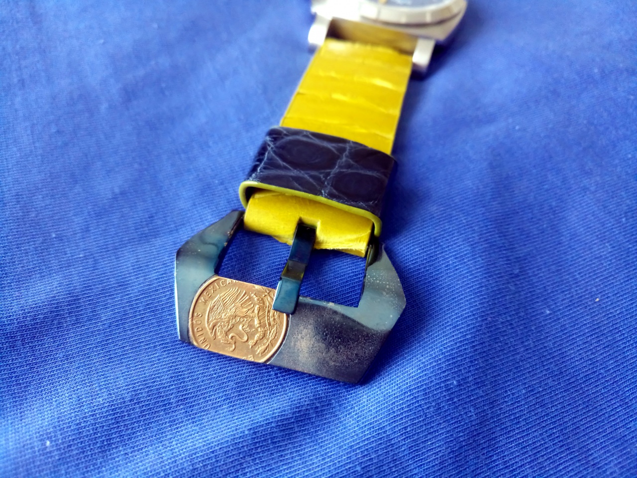| Хоммаж с механизмом "Молния" на синей акуле и синей баклей "Монета" |