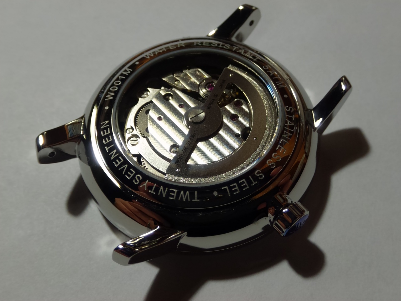 Итак начну: Почтовая Упаковка обычный полиэтиленовый пакет, в котором находится серенькая бумажная коробка с китайскими надписями. Коробка не маленькая, примерно 8х30см, предполагает, что там что то ценное. При распаковке коробки обнаруживаются часы расположенные в отделении прямо по центру упаковки. Часы без установленного ремешка. Считаю это ошибкой производителя, так как плохо обработанные ушки часов сверкают затертыми следами напильника во всей красе. Ремешок из комплекта под кожу, на самом деле сделан из какого то кожзам пластика, довольно твердого и не пластичного, при установке на часы смотрится убого и его можно смело выбросить в помойку. Браслет из стали, который позиционируется как "подарок" значительно лучше, хотя имеет запах металла, который возможно говорит о недостаточном содержании легирующих элементов в сплаве, что вероятно приведет к образованию ржавчины со временем. Рекомендую побаловаться и заменить через какой то срок. Сами часы издалека выглядят неплохо, даже сняв пленки царапин на корпусе не обнаружил.А вот под стеклом на полированных жестяных стрелках и циферах красуются жирные отпечатки пальцев, которые очень хорошо заметны. Вообщем все положительные ощущения от часов сошли на нет. Верхнее стекло заявлено сапфир, прибор для измерения подтверждает это, хотя стеклышко тоненькое и при постукивании издает звук пластика. Заднее стекло минеральное, пыли и соринок внутри корпуса не видно. Механизм миёта работает уверенно. Грузик вращается свободно даже после полной заводки механизма. Вращение и покачивание грузика отчетливо слышно в относительной тишине. Зазоров между деталями корпуса не обнаружено. Циферблат вероятно пластиковый, но вроде бы аккуратный. Если бы не отпечатки пальцев, то и циферы и стрелки вполне бы были приемлемы. Люма естественно нет никакого. Заводная головка имеет покраску синей краской, отскоблить не удалось, видимо надо ацетоном растворять. З.Г. вращается туговато, ухватиться за нее сложно даже моими некрупными пальцами. Перевод даты происходит не очень уверенно есть шанс проскочить нужную. При заводе совершил 40 движений и не почувствовал напряжения пружины, видимо стоит защита от перезавода.