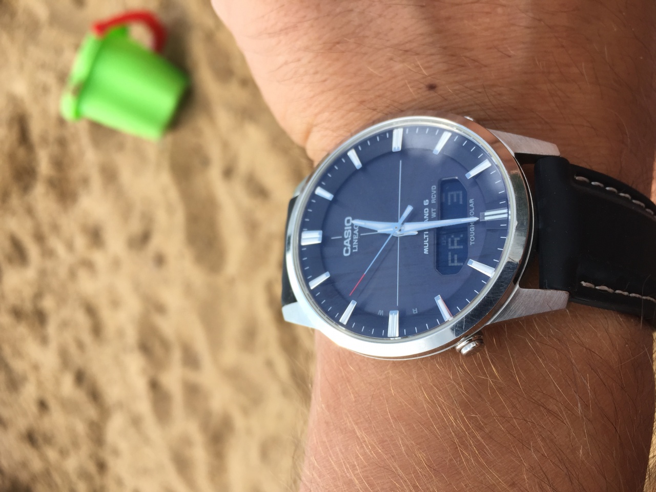 Осмелюсь предложить Casio lcw170 отличный аппарат 39 мм работает у меня с 2015 года, погружался и купался в морях океанах. Только с браслета на ремень пересадил, рекомендую синхронизация раз в неделю.