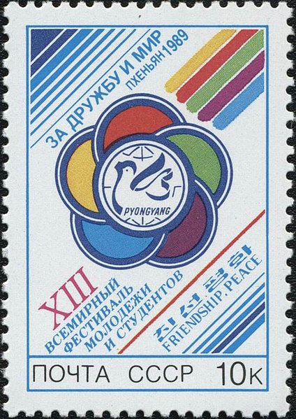 Логотип на циферблате - "Голубь" с надписью под ней - не что иное как логотип XIII Всемирного фестиваля молодёжи и студентов, который проводился с 1 по 8 июля 1989 года в г. Пхеньян, КНДР.