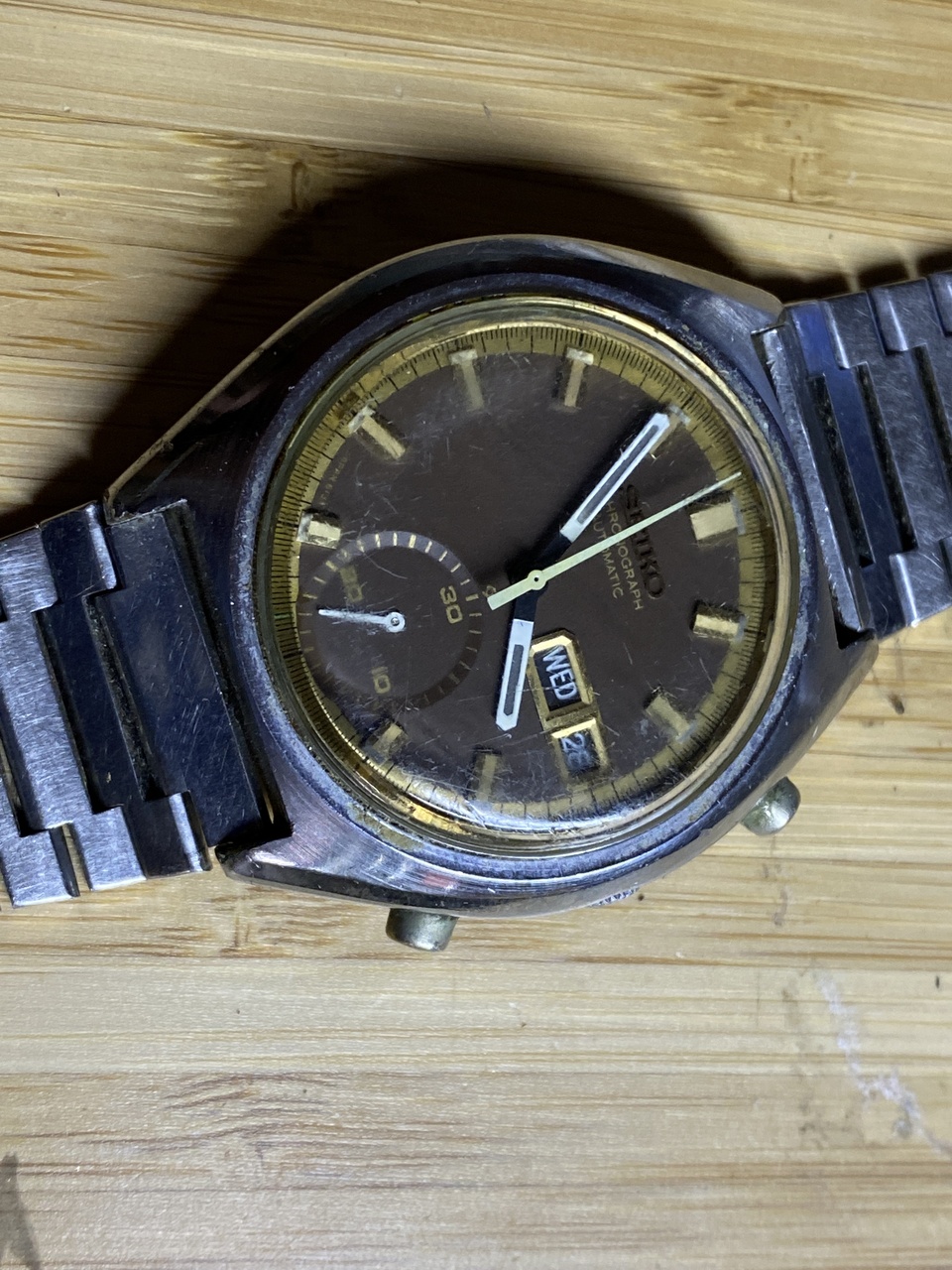 За пару недель нафарцевал на несколько стипендий и поехал в комок на Ленинском покупать часы. На витрине были новые Сейко за 200 руб. с хронографом и коричневым циферблатом, которые я и купил. Также на витрине лежало нечто в непотребном состоянии за 400 руб. Пока я покупал Сейко, жучки, которые всегда там терлись, попросили продавщицу показать это Нечто. Один из них сказал: "400 руб. - очень дорого", второй ответил: "Это же Ролекс".