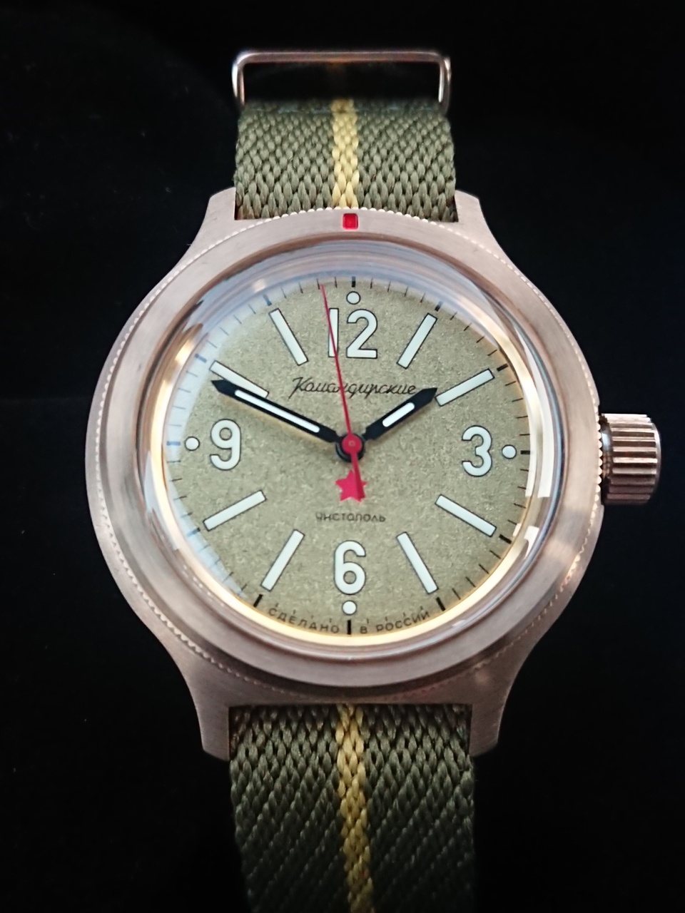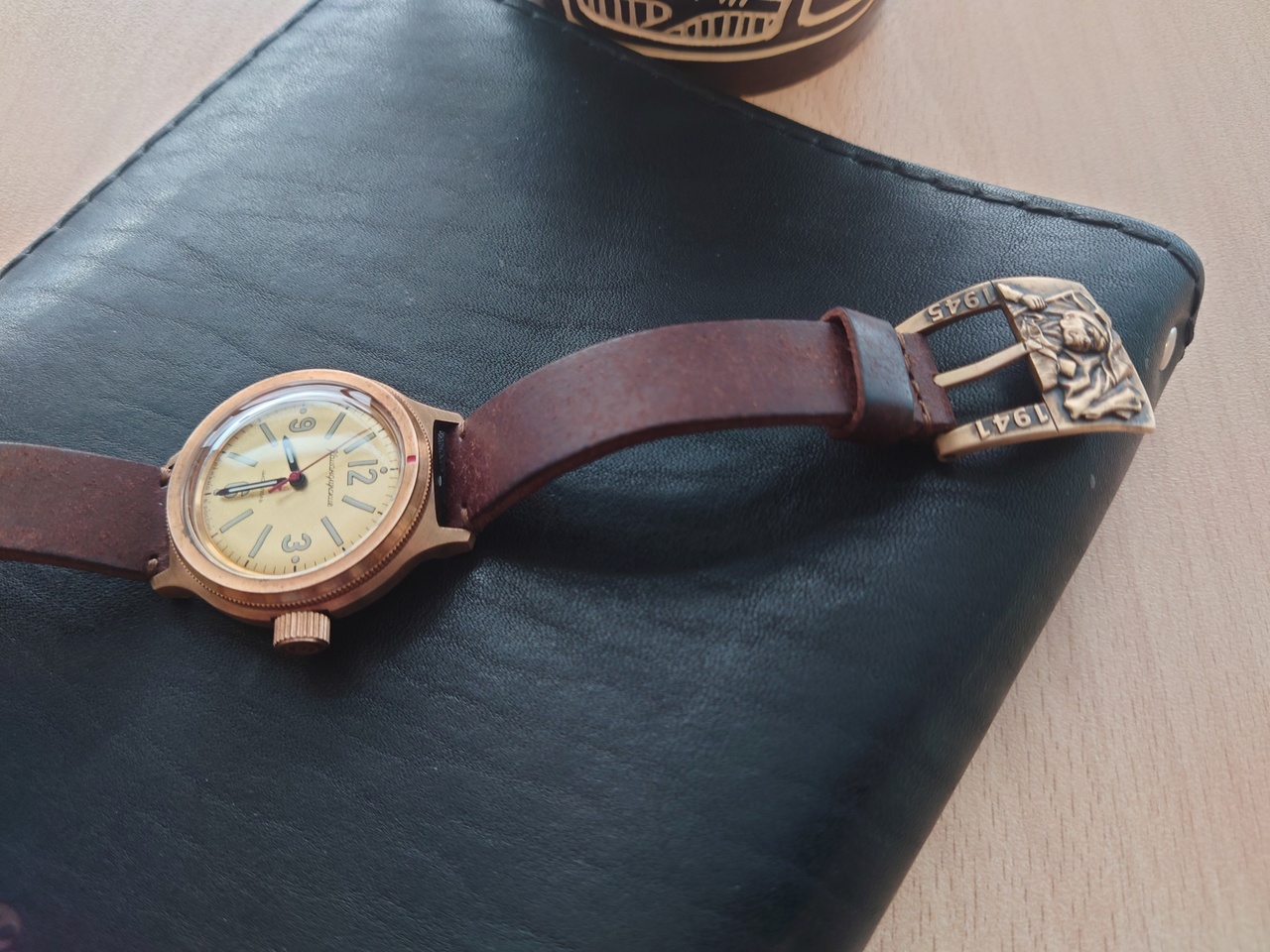 Я бы этот ремешок, несмотря на нелюбовь к НАТО, и оставил, если бы не стальная фурнитура в нитриде титана «под розовое золото»., которая совершенно не сочетается с бронзой.