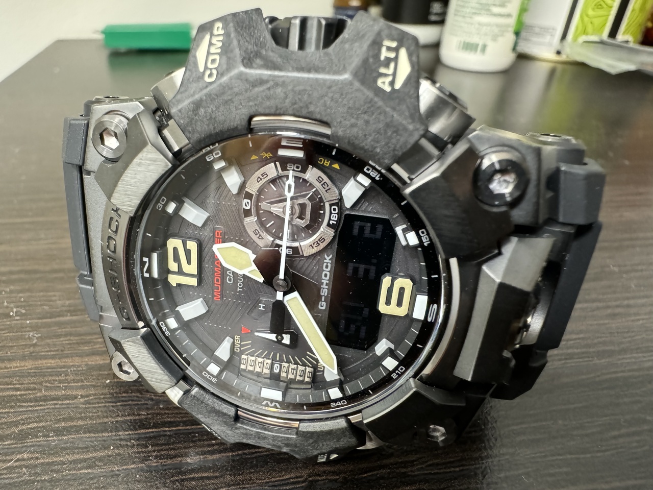 ) G-Shock в качестве основных и единственных часов я использую еще со 2-го класса школьных лет и никакие другие часы на своей руке не представляю, более того, если вышел из дома без них, то ощущение, будто голышом по улице иду. Так что да, я фанатик G-Shock, при оценке моих слов делайте поправку на это. Теперь по критериям отбора: нужны были шоки обязательно с Milti Band 6, солнечной батареей, сапфиром, Bluetooth, термометром и компасом. И чтоб это всё в цифро-аналоговом представлении с настоящими стрелками без нарисованной бутафории. Как можно понять, после такого запроса круг возможных вариантов сразу сузился до неприличия и выбор пал на эти часы. Бонусом получил стальную броню с DLC-покрытием и работу с GPS телефона, что окончательно развеяло сомнения в оправданности ценника.