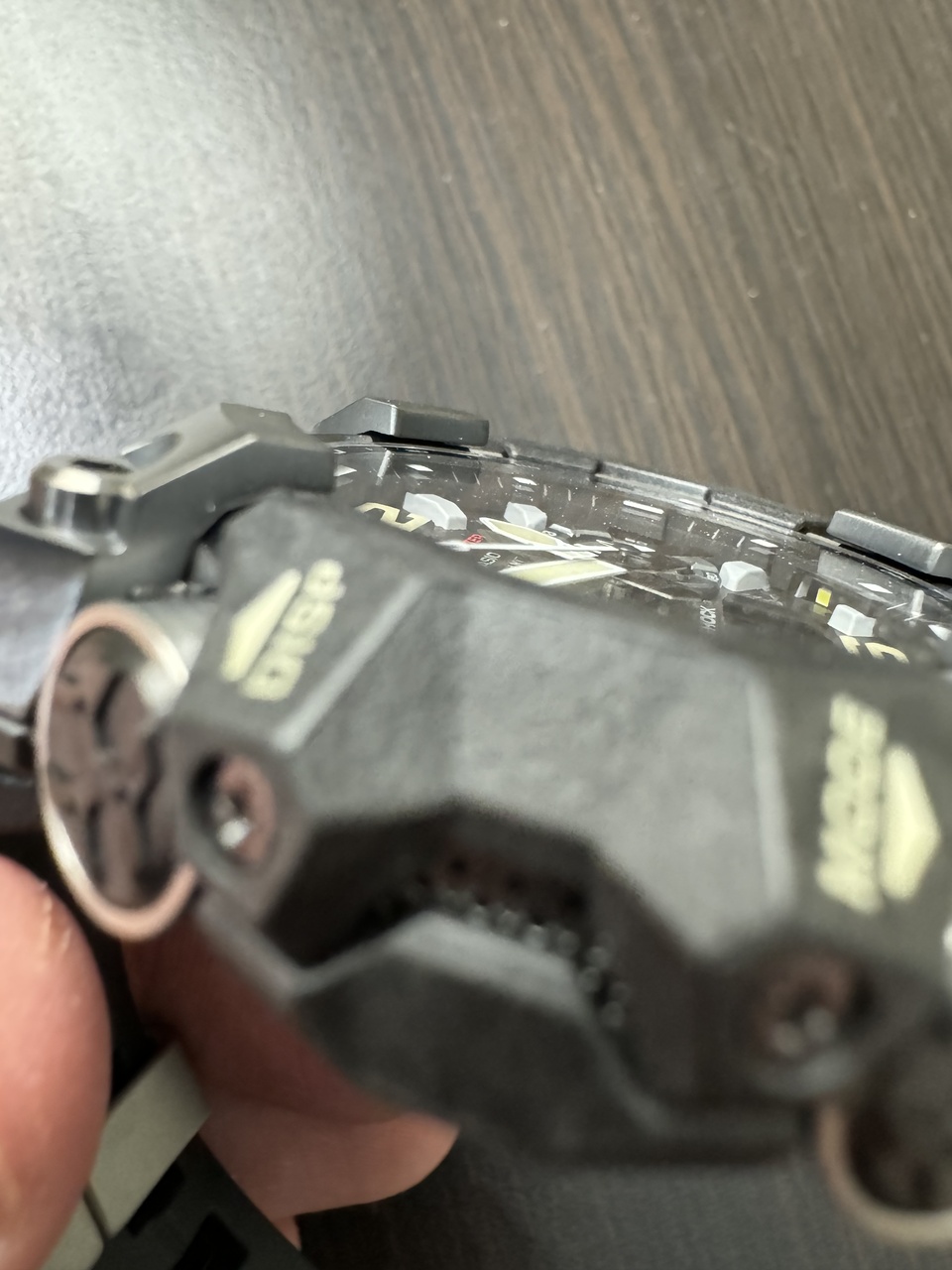 Сразу скажу, я от них в восторге, хоть и не в первый раз вижу их вживую и уже мерил ранее. Сравнивал также вживую их с GWG-1000 и GWG-2000. Выглядят и ощущаются сильно иначе. B1000 мало того, что фактически меньше по всем параметрам, они еще и несколько более эргономичной формы. Напомнило ощущения от GW-B100, только здесь намного больше металла и более сложная и многогранная форма. Как отметила жена, часы похожи на притаившегося на руке трансформера, прикинувшегося часами