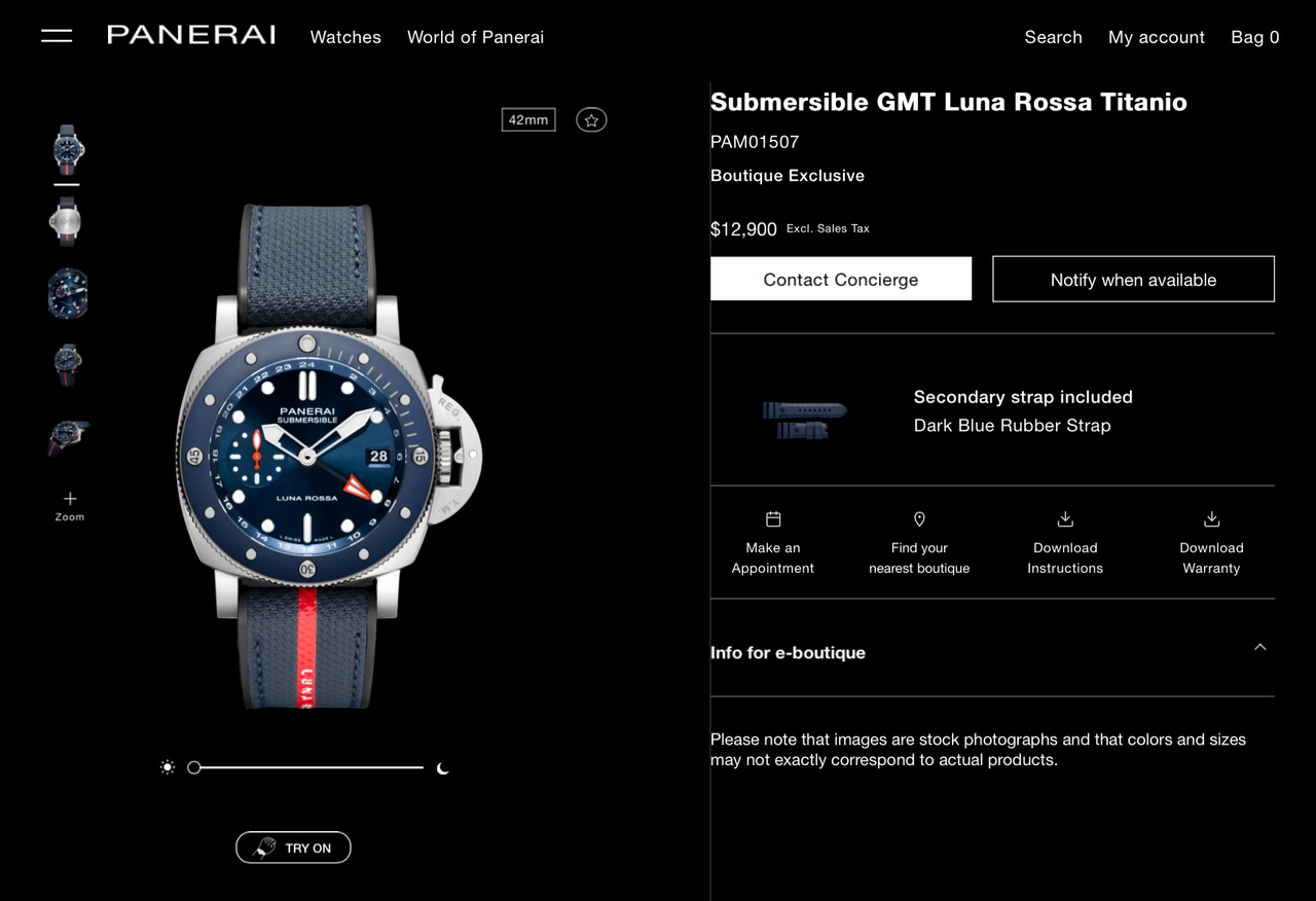 Титан, диаметр 42 мм, второй резиновый ремешок в комплекте https://www.panerai.com/us/en/collec...a-titanio.html