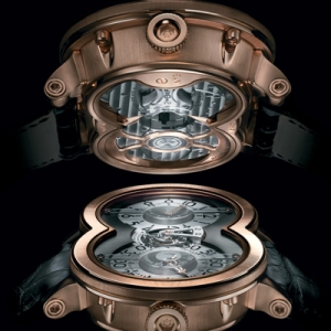Механизм:- Приподнятый центральный одноминутный турбийон, отдельная индикация часов и минут, семидневный запас хода.