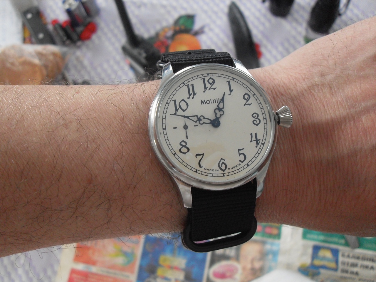 Учитывая, что в это время карманные часы «переходили» на запястье, учитывая какие «будильники» приходилось носить тогда на запястье (ещё иногда и шашкой наголо со штыком помахать с этим будильником, по полю побегать, да и просто пошагать), плюс учесть, что вокруг постоянная война и не то что браслетов и цепочек нигде нет, вообще нет никаких часовых ремешков, баклей и прочей часовой бижутерии, а также отсутствие всякого тонкого инструмента, за исключением остро наточенного лезвия ножа, как пользоваться часами, да ещё, чтобы было и удобно? Как заполучив такой трофей, как часы, приладить его к руке, да ещё так чтобы он точно «не улетел» с руки в атаке, да ещё и из подручных средств? Ну или путешественник, матрос, лётчик или геолог того времени - в пустыне, в горах, на море, в тайге? Какие бакли, шпильки, браслеты, отвёртки и прочая?!