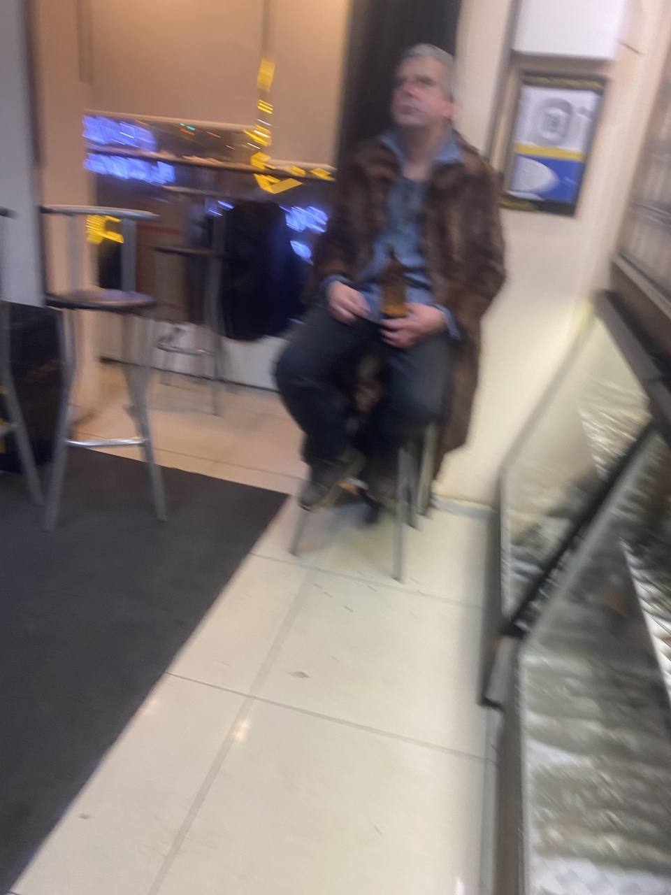 Про шубы…. По дороге, за 5 минут до закрытия, выпрыгиваю из тачки, заскакиваю в ближайшую разливуху, а там кент сидит с бутылкой в женской норковой шубе и комментирует футбольный матч. Сорри за качество,
