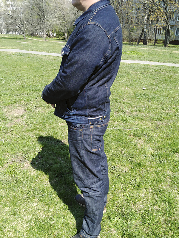 при этом всё-таки изначально заложенная (и предусмотренная) относительная сверх-жёсткость "а-ля брезент" - вводившая из пакета в некоторый ступор и растерянность, что вот, эта шмотка уже до конца тебе жизни - на деле оказалась МЕНЕЕ прочной, чем более мягкие денимы: сначала пробилась промежность у 666 из аналогичного материала, а сейчас после стирки и на куртофане дырка на спине обнаружилась:
