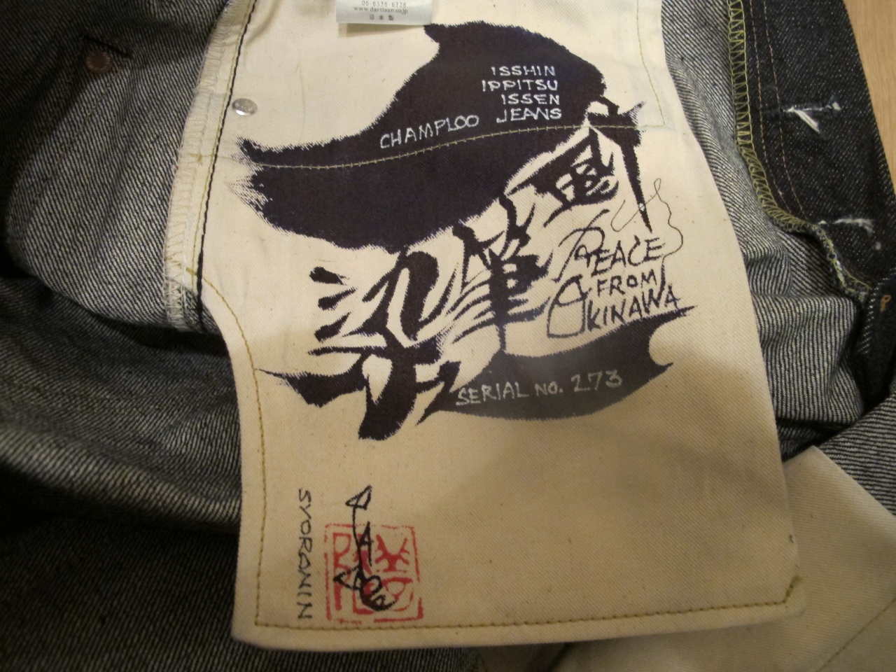 Джинсы Champloo – третий совместный выпуск SDA и мастеров Окинавы. Я помню только один предыдущий с патчем, на котором изображен Никсон. Этот выпуск посвящен 45-летию со дня возвращения Окинавы в состав Японии. Кроме того, 1945 – год окончания 2-й Мировой. Всего было выпущено 300 копий, так что модель действительно редкая.