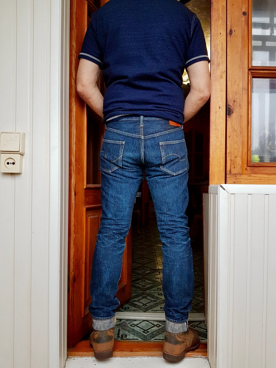 Усадка. Стандартная усадка SDA их классического 15 oz денима. Т.е. довольно значительная. Причем по опыту – будет продолжаться еще 3-4 стирки, но не столь значительно. Поэтому и подшивать, наверное, не стану. Да и к подворотам вполне лояльно отношусь. Деним достаточно плотный и тугой на растяжку, разноску. Зато и форму достаточно хорошо держит.
