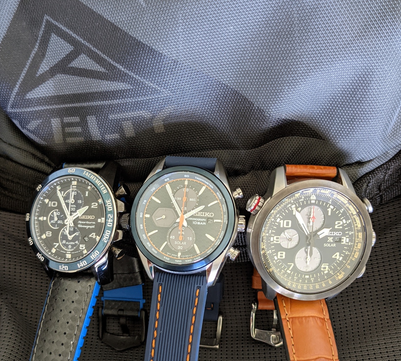 Japan: Seiko Sumo Chronograph / Citizen Nighthawk Radio Controlled / Seiko Sportura Chronograph Swiss: Hamilton Khaki Air Race Chronograph / Victorinox Ambassador Automatic