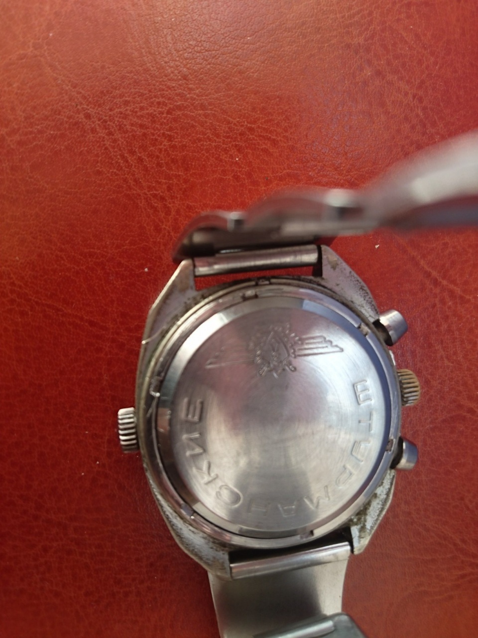 Получил их сегодня! Нержавейка таки, желтил клей или кто знает что, с трудом растворителем снял. Цифер в мелких кавернах как будто... и таки да, помыть просто не получится. Все функции работают, только ЦСС гнутая и слегка болтается. Крышка как и положено - Штурманские. Меня только смущает отсутствие года/штампа SU/значка 1МЧЗ на калибре.