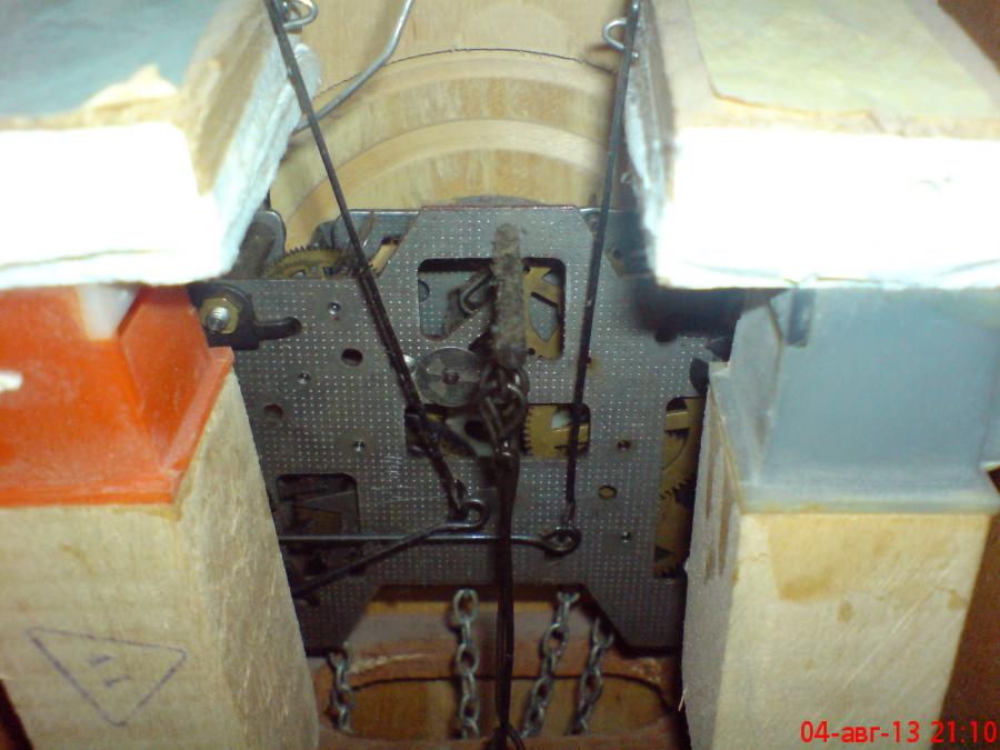 Родные гири на левых часах отсутствуют - пока висят импровизированные грузы из непойми чего. Позже подберу чтонить подходящее и сделаю покультурнее)