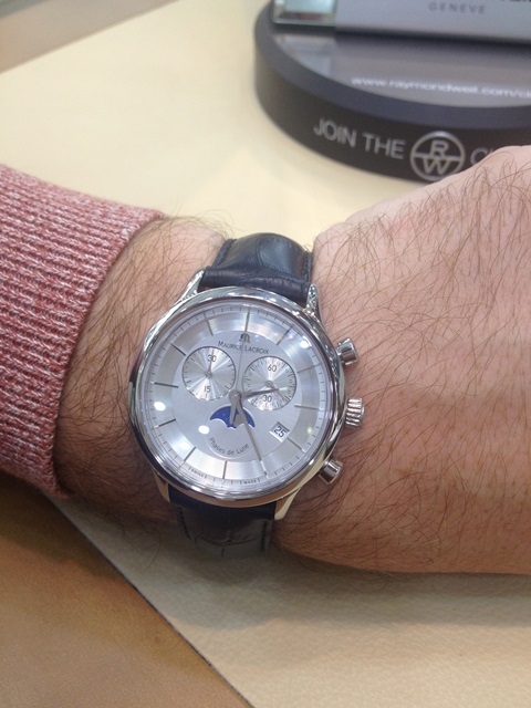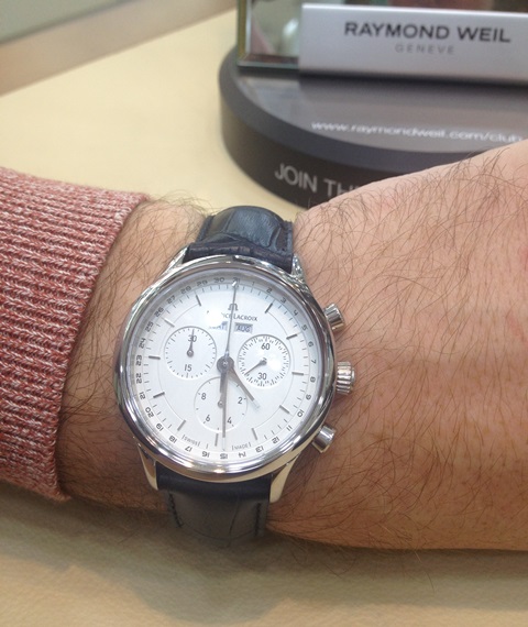 У Hamilton выбор большой, причем начиная в среднем от 30 тыс., и часы и хронографы, у них мерили диаметры 45-46, и в принципе хорошо сидели. Maurice Lacroix, Raymond wei мерили 3 модели, и причем последними после всех вышеперечисленных и конечно они сильно проигрывают