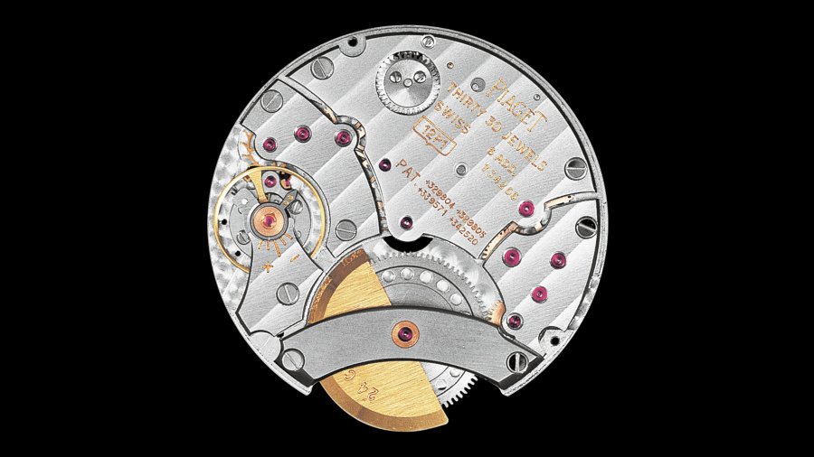 The historic 12P movement incarnates the first generation of Piaget automatic movements. Launched in 1960, the 12P movement was the thinnest automatic movement in the world of its time: 2.3 mm thick. It features an off-centered oscillating weight in 18K gold. The vertical Côtes de Genève, the circular-grained mainplate and the beveled bridges round off this exceptional movement, recalling the aesthetic codes cherished by the Swiss watchmaking brand.