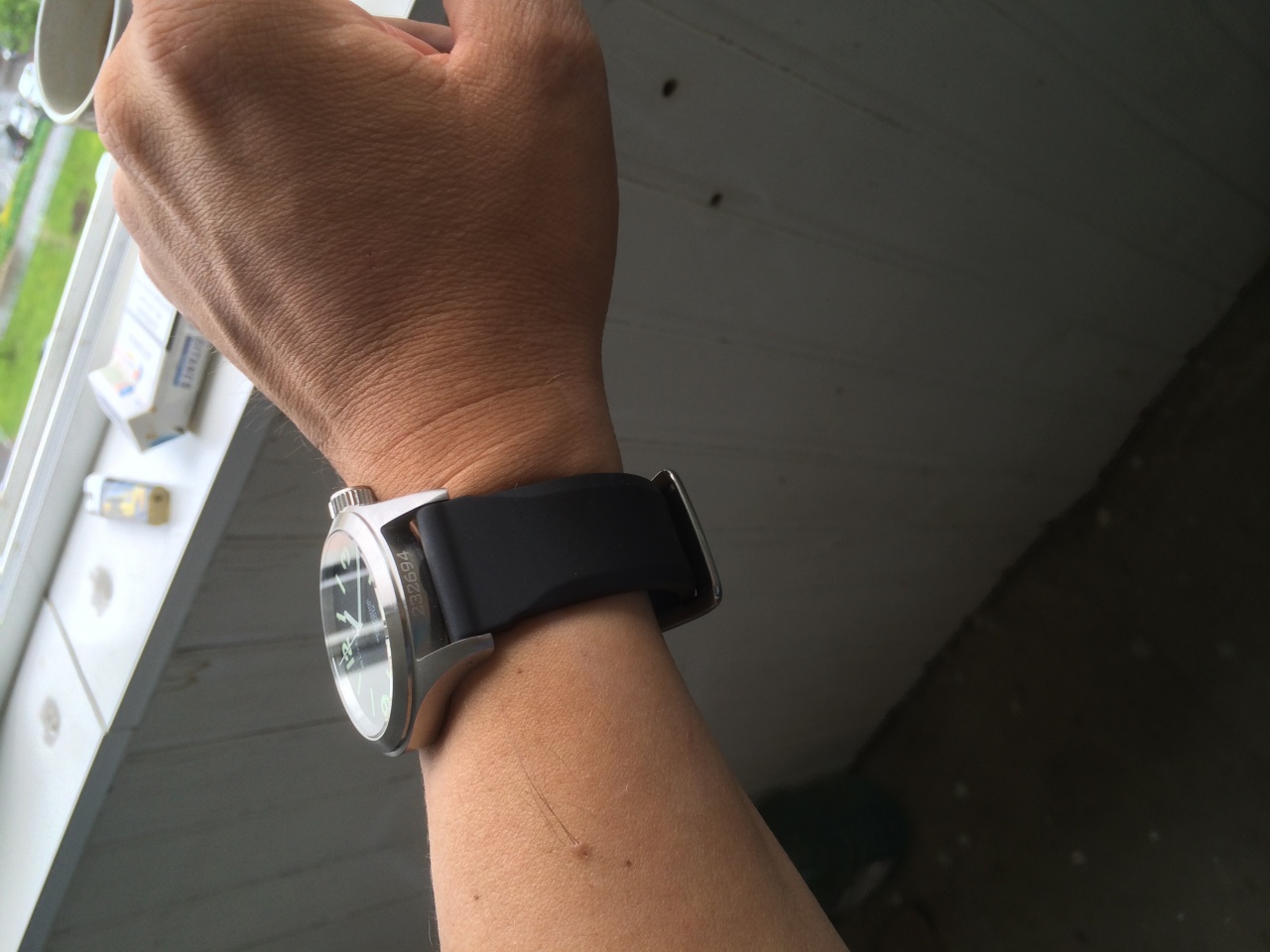 Был на тренировке, а потом так же, с часами, душ принимал. Вроде бы и с ремешком ничего не случилось, но ощущения, от мокрой кожи, неприятные.