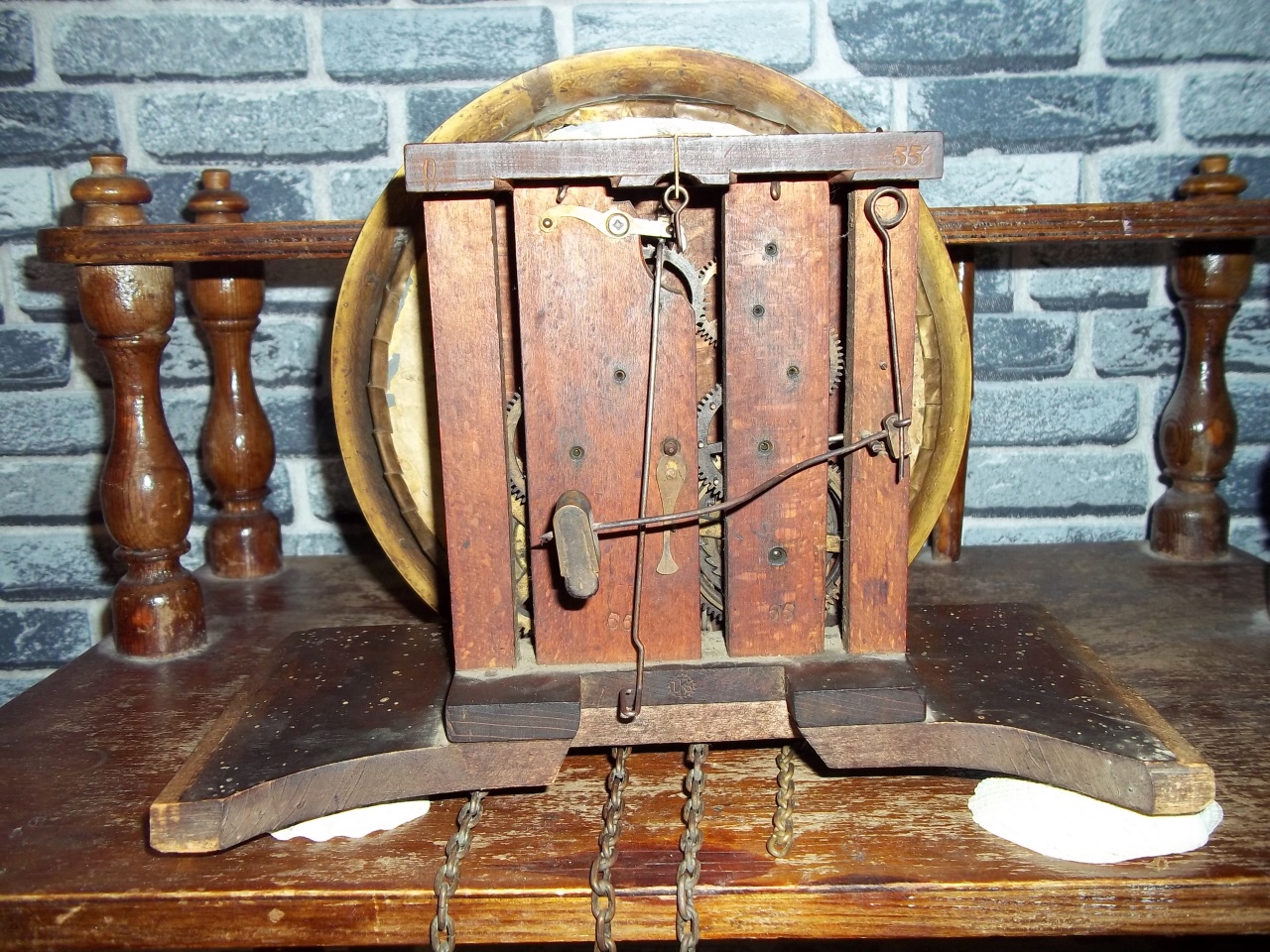 тут эта деталь сделана правильно по форме нижнего крепления, но не правильно по длинне - эта петля должна быть внутри деревянного корпуса, а сам крюк латунного подвеса маятника быть не виден снаружи.