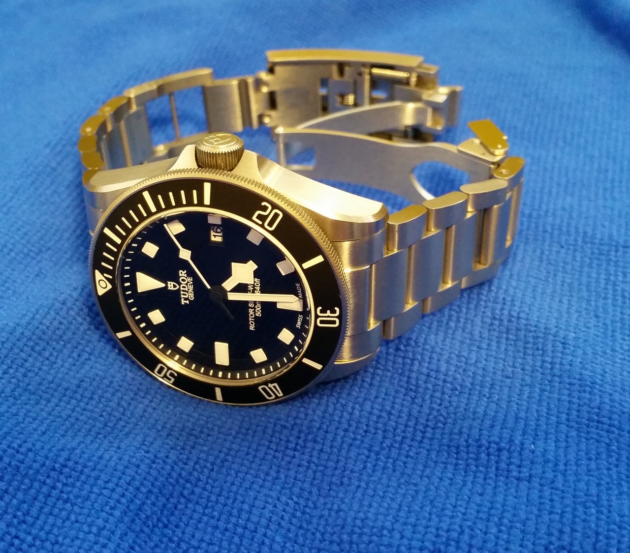 Фото после купания. Был у меня опыт с часами Seiko Premier, когда часы не знали внешней чистки лет 5 - в итоге между звеньями была грязь, которую уже ничто не смогло удалить. Pelagos же у меня каждый месяц довольствуется душем с мылом и средством для мытья посуды. После такой процедуры часы, хоть и сатинированые, блестят как новые (не считая царапин)