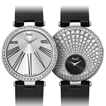 Часовой бренд Piaget предлагает новинку 2009 года – часы с асимметричным дизайном Limelight Twice. «Скромный» вид часов заинтересует любителей драгоценностей: они буквально состоят из бриллиантов круглой огранки.