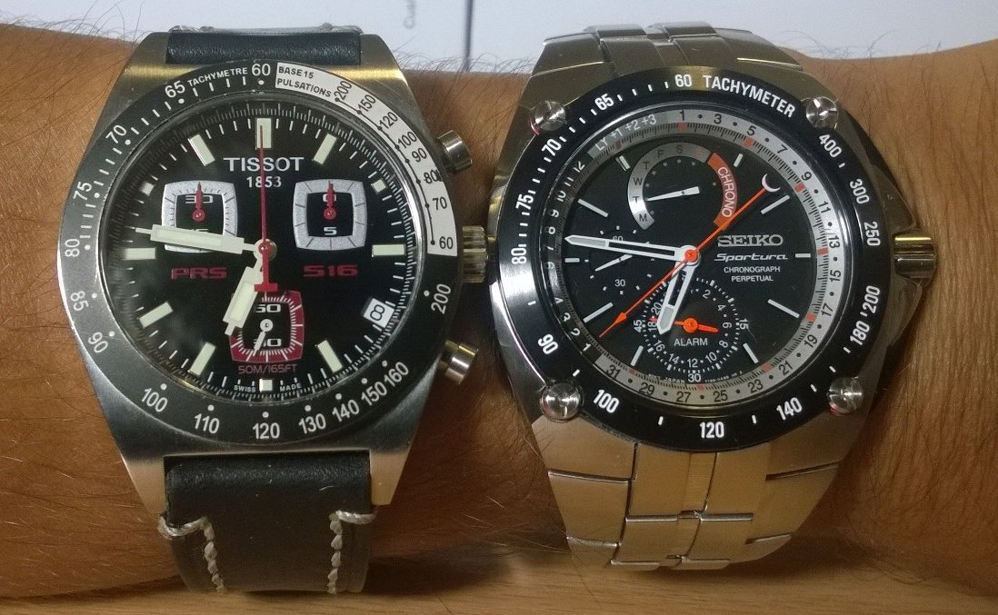 Как видите, и на кварцевых Tissot PRS516 Chrono, и на кварцевых же Seiko Sportura Chrono с этой фото - явно просматриваются крашеные оси, так ведь?