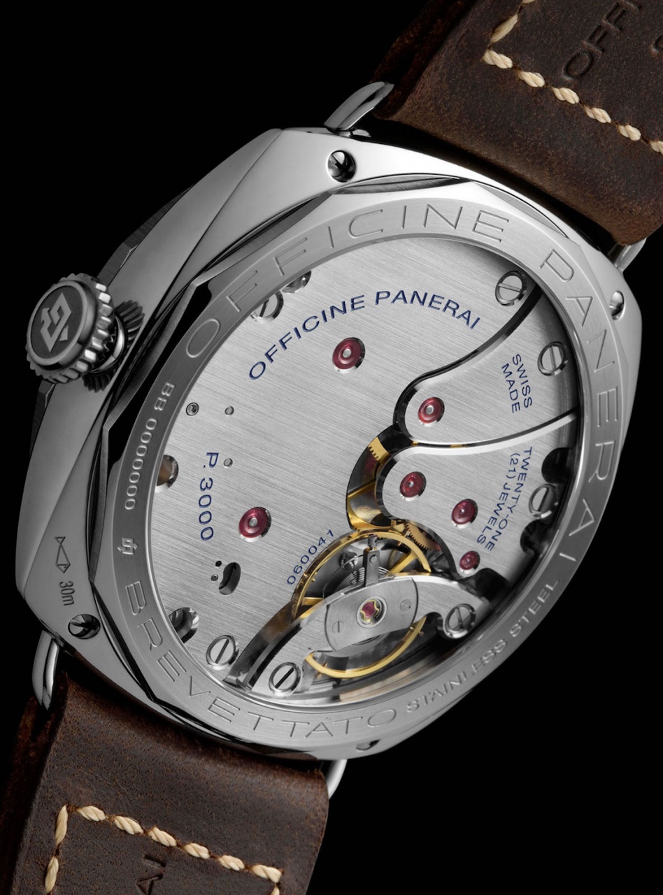 В конце 1930-х годов на Panerai было изготовлено несколько часов Radiomir со специальным 12-угольным безелем, на котором имелась выгравированная надпись «OFFICINE PANERAI – BREVETTATO». Надпись указывала на то, что в дизайне циферблата был использован запатентованный люминофор Radiomir, а сами часы предназначались не для военных целей, а для представления оценочной комиссии Королевских ВМС Италии, которая испытывала новые часы и инструменты на предмет их пригодности во время подводных операций. Часы Special Edition Radiomir 3 Days Acciaio воспроизводят все основополагающие характеристики той редкой модели и дают коллекционерам возможность прикоснуться к одной из захватывающих глав в истории Panerai. Простой и лаконичный циферблат двухслойной конструкции, делающей максимально отчетливыми большие цифры и индексы, окрашен в приглушенный коричневый цвет, который впервые появился в коллекции Panerai. Этот цвет напоминает эффект свечения люминофора Radiomir – люминесцентного вещества на основе радия, которым были покрыты элементы индикации у исторической модели, имевшей первоначально черный циферблат. Сквозь сапфировое стекло задней крышки хорошо виден часовой механизм с ручным заводом P.3000, разработанный и изготовленный на Мануфактуре Panerai в Невшателе. Часы Radiomir 3 Days Acciaio сохраняют водонепроницаемость до 3 бар (до глубины около 30 метров). Они помещены в элегантный деревянный ящик, где также имеются запасное стекло Plexiglas®, сертификат с серийным номером часов и редкая публикация, рассказывающая об экипировке спецназа Королевских ВМС Италии, в состав которой входили часы и инструменты Panerai.