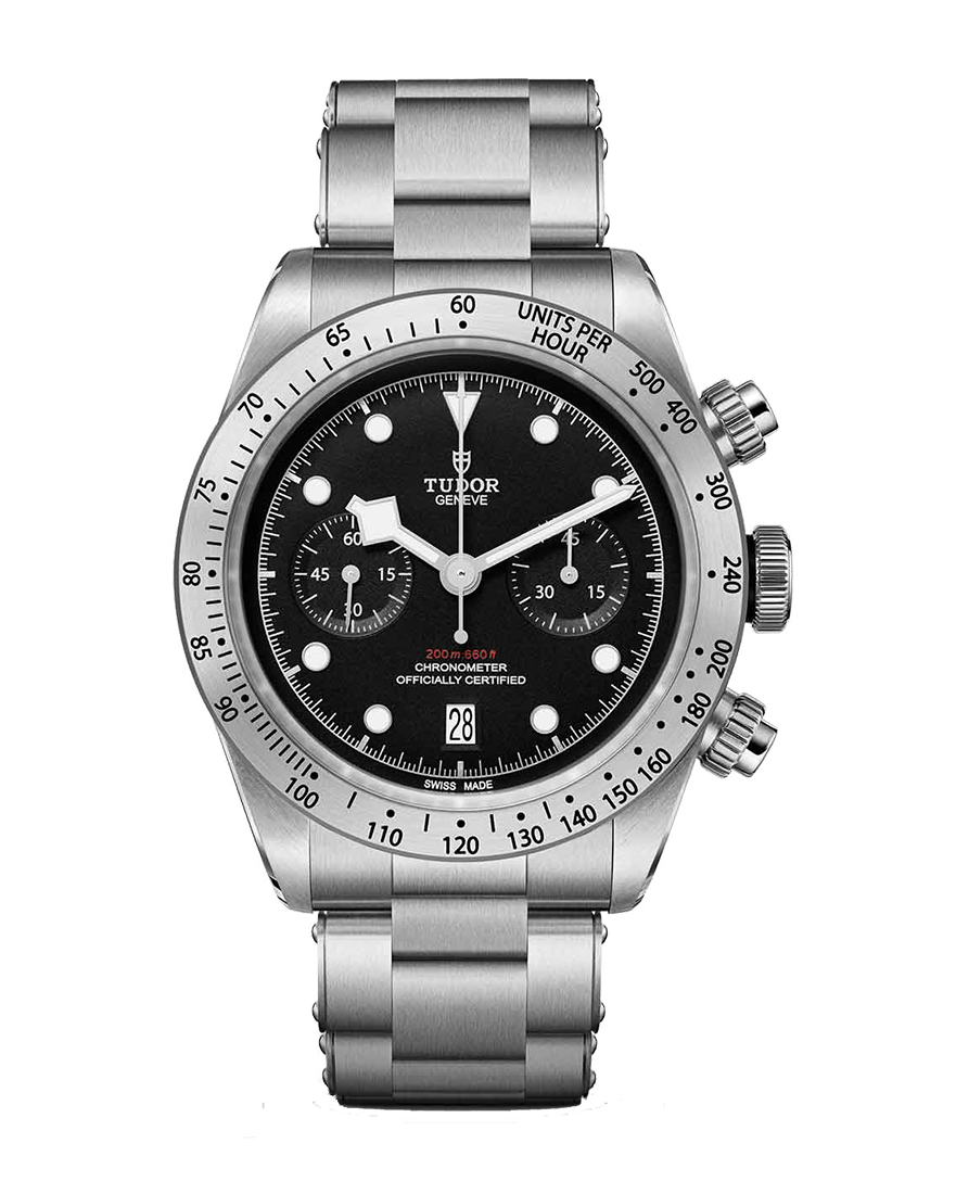 Циферблат черного цвета, накладные деления цвета родия с белым люминесцентным покрытием Super-LumiNova®;