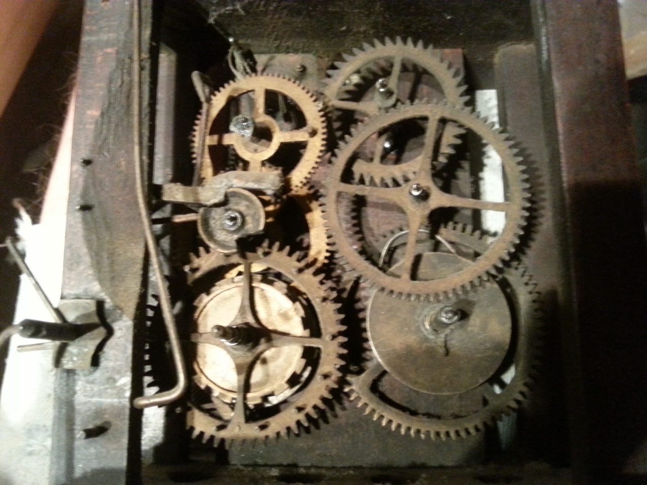 К сожалению, при беглом поиске я не нашел картинку с описанием построения плеч скобы крючкового хода, надеюсь что Вы сумеете подобрать правильные углы просто прикладывая анкерное колесо к скобе и глядя на картинку - на ней углы очень близкие к правильным.