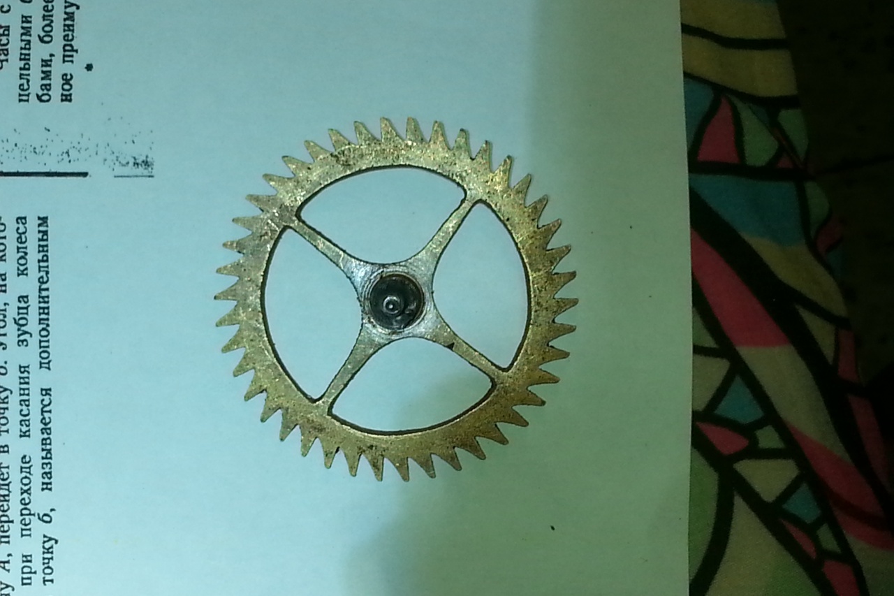 повернется на половину шага и упрется зубцом в рабочую поверхность выходной палеты (справа на фото);