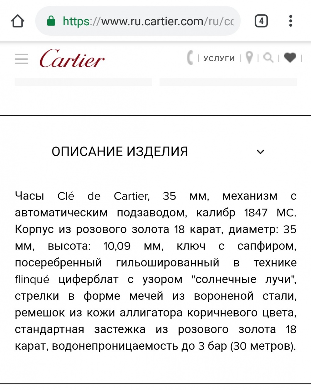 Механизм в Cle de Cartier 31mm мануфактурный full-in-house - caliber 1847 MC, запас хода 42 часа