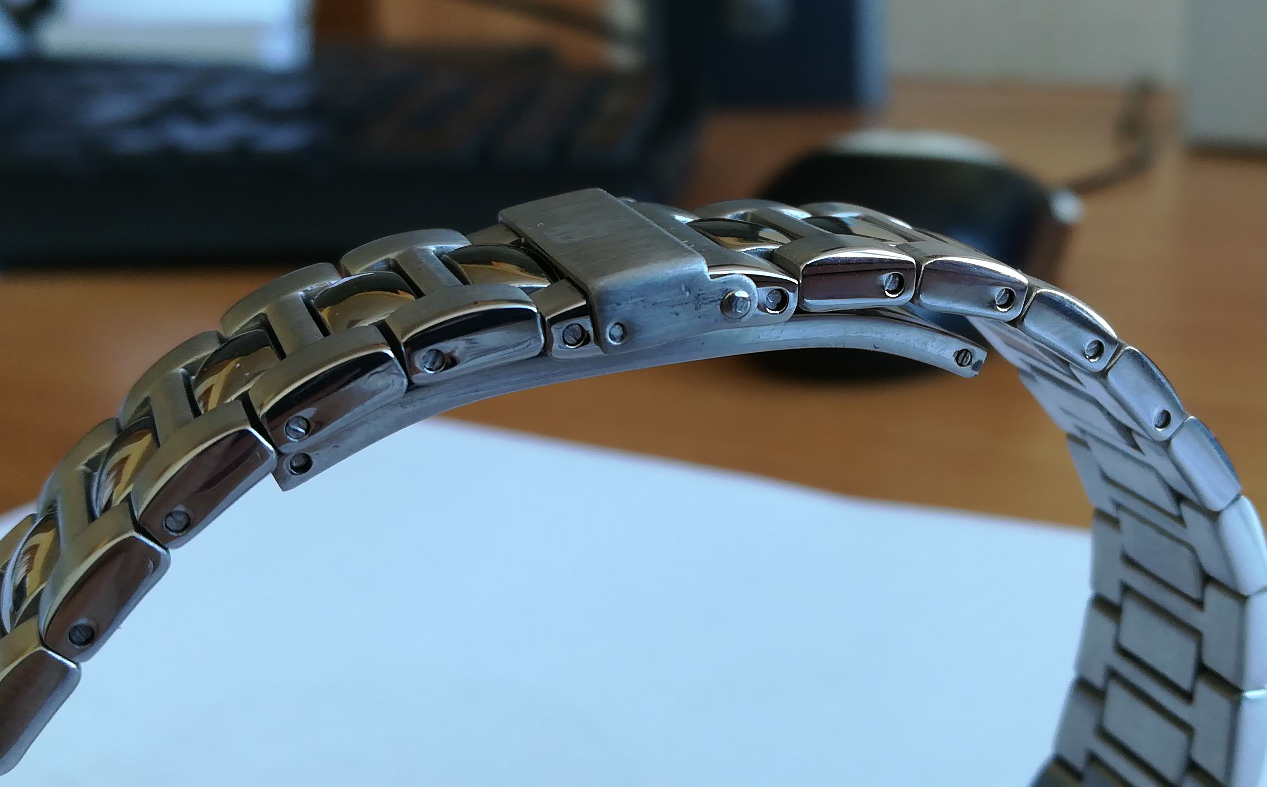 Браслет - бабочка с дополнительной защелкой, обработан неплохо, как и корпус, но ...