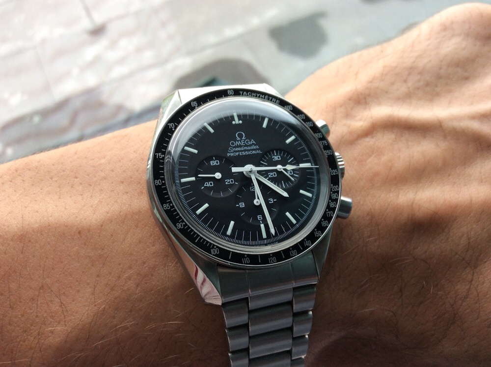 В итоге опять-таки через три месяца на ибее натолкнулся на вкусное предложение - speedmaster professional на винтажном браслете, причём браслет был новый - это мне очень понравилось, так как вторую омегу на одинаковом браслете не хотелось, а новый ставить - цены довольно кусачие. В этот раз осторожно списался с продавцом и случайно выяснил, что это коллега с немецкого форума